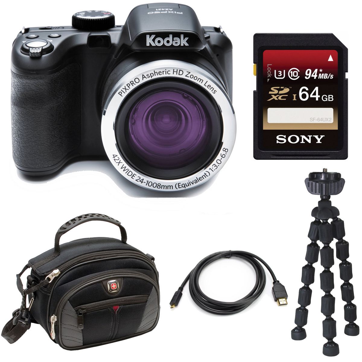 Passion and performance go hand in hand with the Kodak PIXPRO AZ425 Digital Camera from the Astro Zoom Collection. A 42x ultra long zoom lens with optical image stabilization delivers crisp, clear 20 megapixel close-ups, panorama or HD videos. Auto scene, object tracking, post-editing features and a host of powerful yet user-friendly settings make photography easy, fun, and zero hassle.20 MegapixelsWith 20 million pixels, you can alter your photos by cropping, zooming, or enlarging without losing out on quality.42x Optical ZoomWhen you want to get close, but not too close. The scene grabbing 42x zoom of the AZ425 will get you in tight without putting you in a tight spot.24mm Wide Angle LensFor those times when there's much more to the story, rely on the AZ425's gracious 24mm Wide Angle lens. Don't just snap part of the bigger picture, get the whole thing.3-Inch LCD ScreenView your images ahead of time or while you shoot, with a big, bright 3-inch LCD screen. All your photos will turn out just the way you planned.Panorama CaptureWhen a 3 x 5 inch just isn't enough to get you from Point A to Point B, the AZ425's handy Panorama Capture will help you share your adventures all the way through. Perfect for capturing every moment..