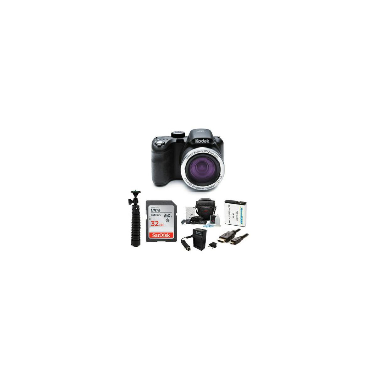 KODAK PIXPRO AZ425 Astro Zoom 20MP Digital Camera (Black) with 32GB Card Bundle