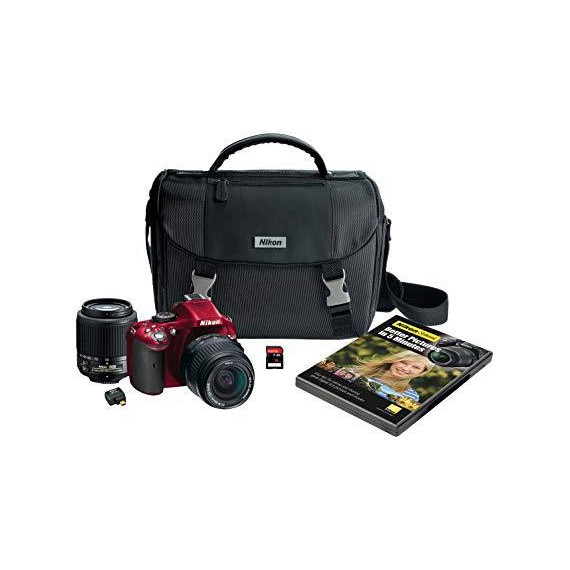 Nikon D5200 Digital SLR with 18-55mm & 55-200mm Non-VR Lenses (Red)