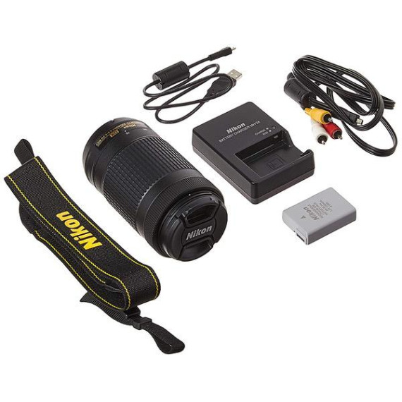 Make sure this fits by entering your model number. AF-P DX NIKKOR 18-55mm f/3.5-5.6G VR Lens AF-P DX NIKKOR 70-300mm f/4.5-6.3G ED Lens EN-EL14A Rechargeable Li-Ion Battery MH-24 Quick Charger EG-CP16 Nikon Audio/Video Cable