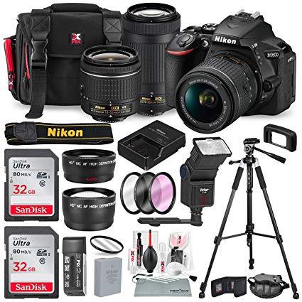 Nikon D5600 DSLR Camera with NIKKOR 18-55mm + 70-300mm Lenses W/2 x 32GB Memory Card + Digital Slave Flash + Filters, Telephoto & Wideangle Lens, Xpix Lens Accessories with Deluxe Bundle