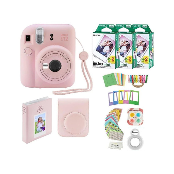 Fujifilm Instax Mini 12 Instant Camera with Case 60 Fujifilm Prints Decoration Stickers Frames Photo Album and More Accessories Blossom Pink