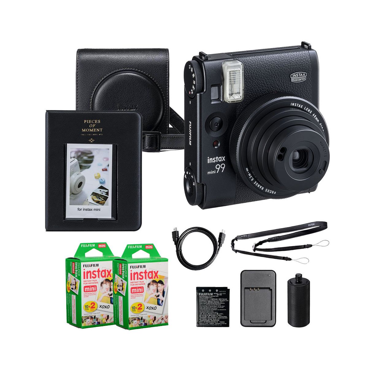 Fujifilm Instax Mini 99 Instant Film Camera Black Bundle – Includes 40‑Sheets Instax Mini Film, Protective Case, and Mini Photo Album