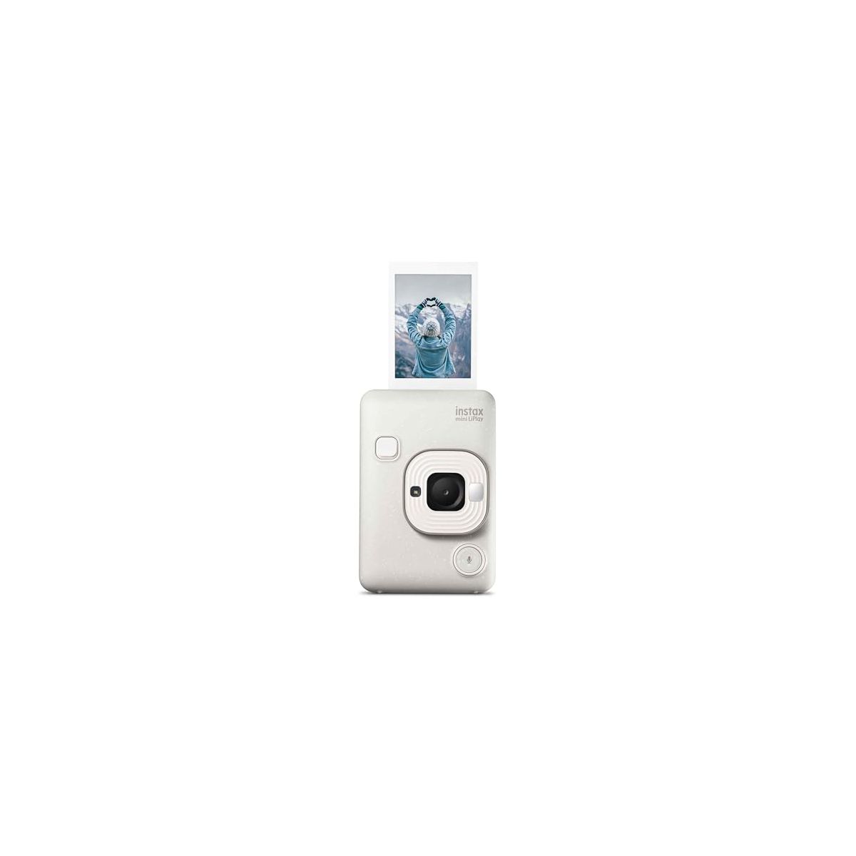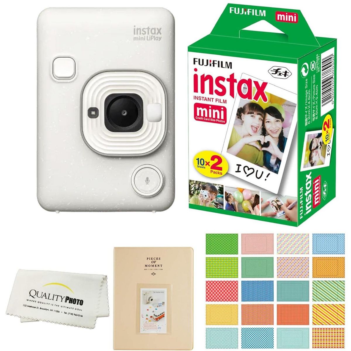 Fujifilm Instax Mini LiPlay Hybrid Instant Camera with 20 Instant Films and Photo Album Plus Stickers Microfiber Cloth (Misty White)