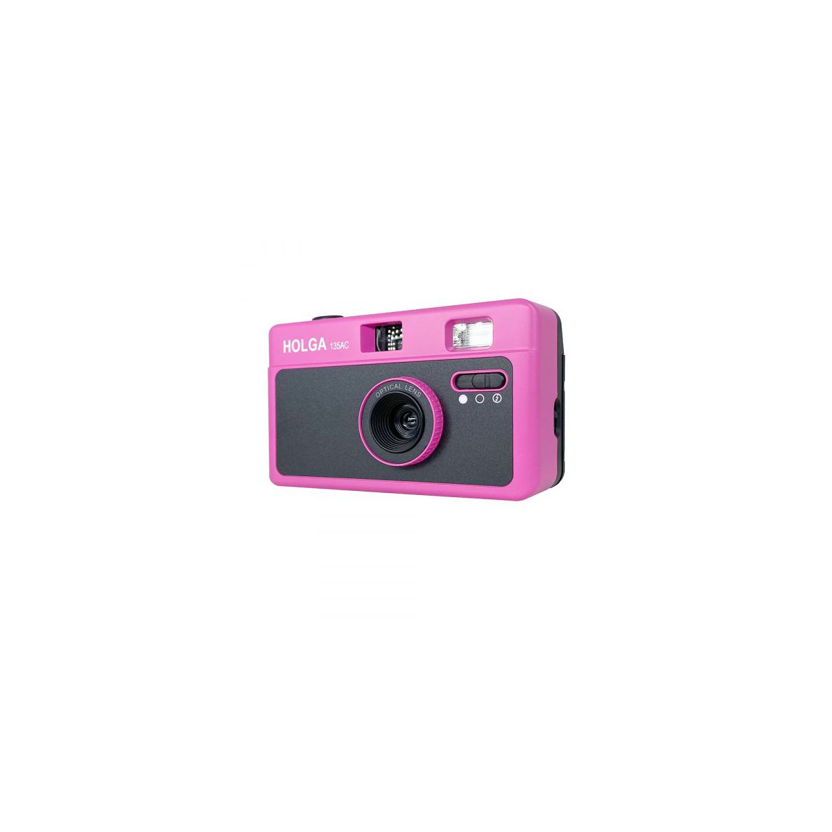The Holga 135AC Camera offers the convenience of a point-and-shoot design. Its fully automatic film advance and reqind streamline the shooting process, yet the plastic lens and fixed settings evoke the disctingt aesthetic of classic Holga photography. The fixed shutter speed and wide-angle lens make it well-suited for capturing a variety of scenes, especially in daylight while the built-in flash provides versatility for low-light situations.
