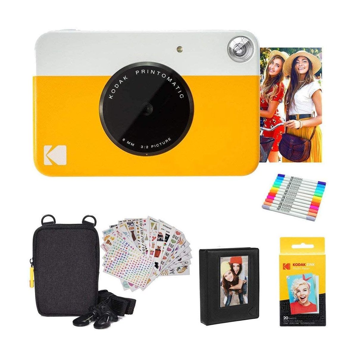 Just point, shoot, and print. The Kodak Printomatic Mini Instant Camera prints smudge-proof, water- and tear-resistant photos up to 5 MP automatically. With this Kodak instant camera, you just point, shoot, and print. Perfect for taking on the go, whenever you want to share prints, the Kodak Printomatic Wireless Mini Instant Camera is the easiest way to share photos with friends. This mini digital camera's compact design slips neatly into your shirt pocket. The portable camera speed even allows you to continue shooting while your photo is printing. The "Insta Camera" Zero Ink technology means you don't need to worry about messy print cartridges, film, or toner. With this instant picture camera your prints are adhesive-backed, so you can get creative and use the photos to decorate, just as you would any sticker. No USB cable is included.