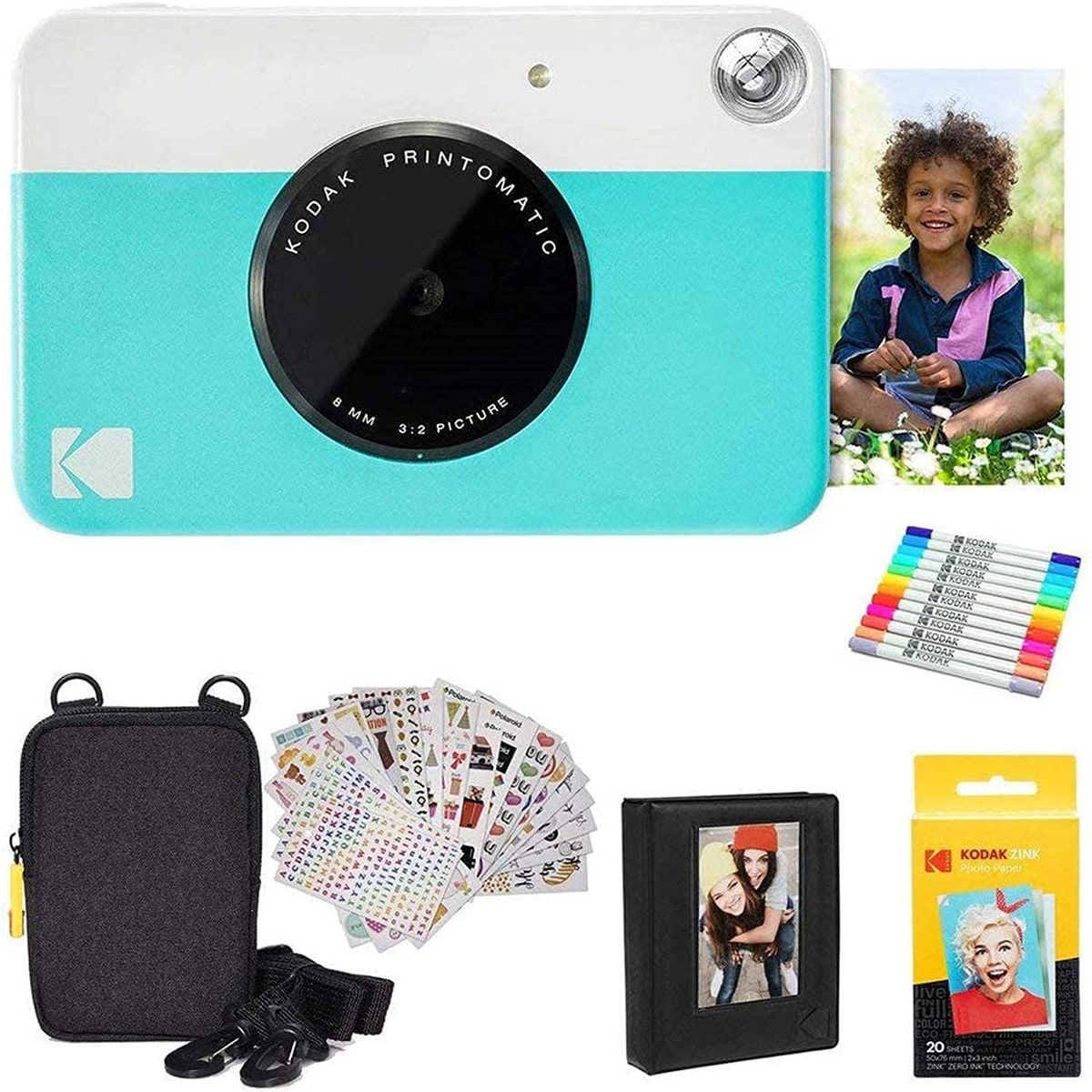 Just point, shoot, and print. The Kodak Printomatic Mini Instant Camera prints smudge-proof, water- and tear-resistant photos up to 5 MP automatically. With this Kodak instant camera, you just point, shoot, and print. Perfect for taking on the go, whenever you want to share prints, the Kodak Printomatic Wireless Mini Instant Camera is the easiest way to share photos with friends. This mini digital camera's compact design slips neatly into your shirt pocket. The portable camera speed even allows you to continue shooting while your photo is printing. The "Insta Camera" Zero Ink technology means you don't need to worry about messy print cartridges, film, or toner. With this instant picture camera your prints are adhesive-backed, so you can get creative and use the photos to decorate, just as you would any sticker. No USB cable is included.