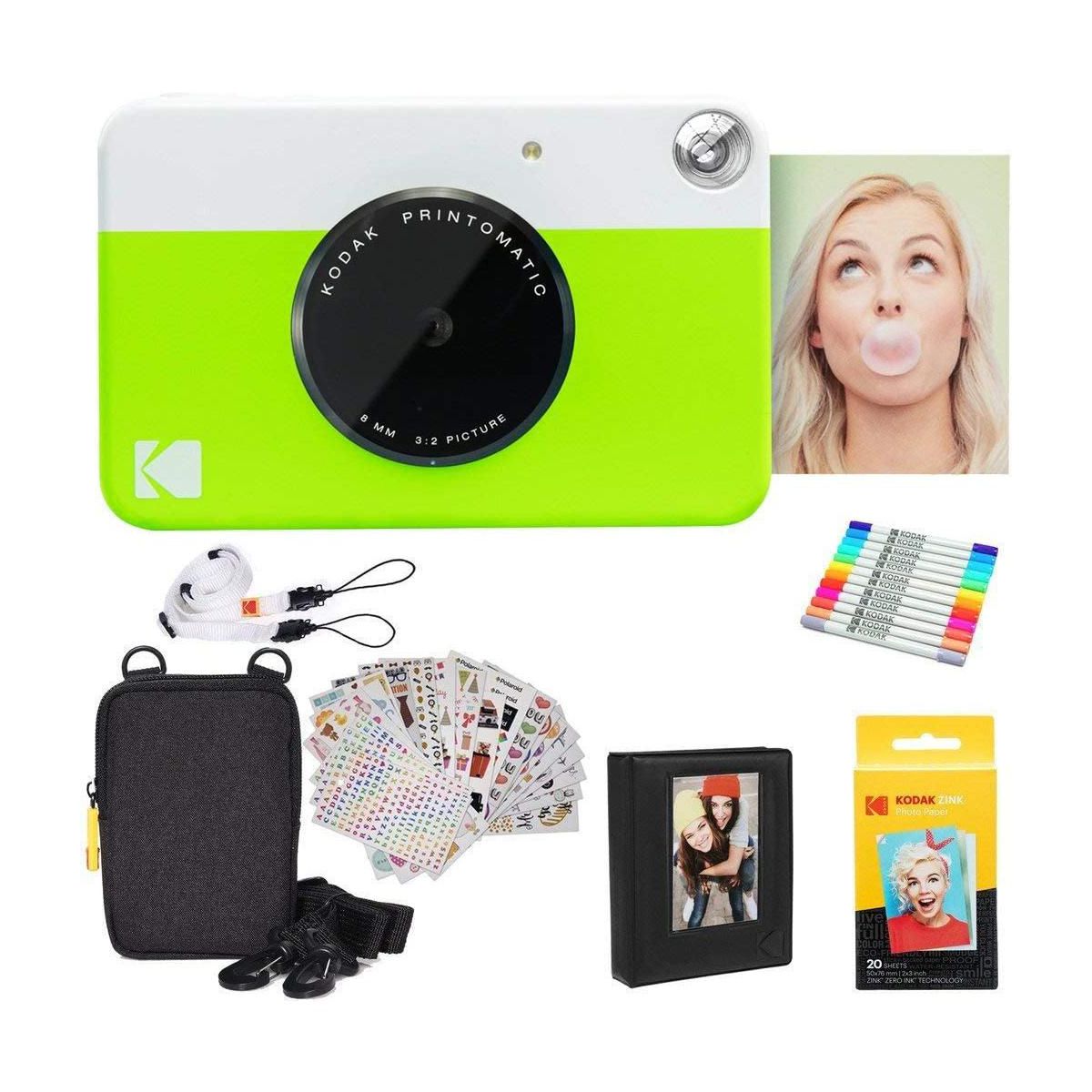 Just point, shoot, and print. The Kodak Printomatic Mini Instant Camera prints smudge-proof, water- and tear-resistant photos up to 5 MP automatically. With this Kodak instant camera, you just point, shoot, and print. Perfect for taking on the go, whenever you want to share prints, the Kodak Printomatic Wireless Mini Instant Camera is the easiest way to share photos with friends. This mini digital camera's compact design slips neatly into your shirt pocket. The portable camera speed even allows you to continue shooting while your photo is printing. The "Insta Camera" Zero Ink technology means you don't need to worry about messy print cartridges, film, or toner. With this instant picture camera your prints are adhesive-backed, so you can get creative and use the photos to decorate, just as you would any sticker. No USB cable is included.