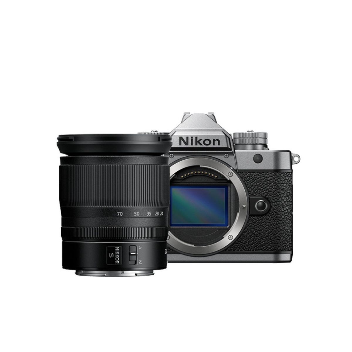 Iconic Design Inspiring Elite PerformanceThe Nikon Zf Mirrorless Camera is the most powerful entry yet in Nikon's digital throwback line. Inspired by the classic FM2, it combines vintage SLR aesthetics with modern Z-series technology to deliver timeless imagery. Its precision-carved aluminum body features engraved dials for shutter speed, ISO, and exposure compensation, while the mechanical shutter offers a satisfying, authoritative click. A dedicated black-and-white mode with two monochrome recipes is available at your fingertips.Intuitive Controls & Retro FeelThe tactile experience extends to the electronic viewfinder housed in a prism-shaped body and a 3.2-inch vari-angle touchscreen, enabling on-the-fly focus, subject tracking, and menu navigation. The screen is fully articulating and front-facing. Additional highlights include:Dual memory card slots (SD + microSD)Dust and weather-resistant magnesium alloy chassisCompatible with MC-N10 Remote GripFull-Frame Sensor, High-Speed PerformanceFeaturing a 24.5MP BSI CMOS sensor and EXPEED 7 processor (from the Z9/Z8), the Zf delivers fast autofocus, low-light clarity, and 96MP high-res photo mode.30 fps silent burst and 14 fps with mechanical shutterPre-release capture of 30 JPEGs a second before shutter releaseDeep Learning auto mode adjusts settings for your scene4K Video & Creative ControlOversampled from 6K, the Zf supports UHD 4K video up to 30p and Full HD up to 120p. A new shutter-priority mode ensures even exposure, while internal 10-bit recording supports SDR, HLG, and N-log. Record up to 125 minutes straight to a memory card.Smart Autofocus & StabilizationThe advanced AF system recognizes people, pets, vehicles, and more, using Deep Learning for precise tracking. Eye-Detection works for both autofocus and manual lenses, magnifying the eye area for sharp results.In-body 5-axis VR offers up to 8 stops of stabilization with Z-mount lenses, and 3-axis with adapted F-mount glass. Focus point VR corrects exactly where it's needed.Nikon NIKKOR Z 24-70mm f/4 S LensThe NIKKOR Z 24-70mm f/4 S is a compact, lightweight standard zoom lens covering wide-angle to portrait-length views, ideal for everyday shooting. Its constant f/4 aperture ensures consistent exposure across the zoom range, while advanced optics—including a unique aspherical ED element and Nano Crystal Coat—deliver sharp, high-contrast images with minimal distortion, flare, or ghosting. A fast, quiet stepping motor supports smooth autofocus for both photo and video, and a customizable control ring adds intuitive handling. The retractable design, weather sealing, and fluorine-coated elements make it a versatile and travel-friendly choice..