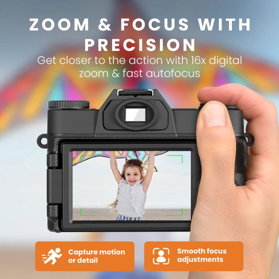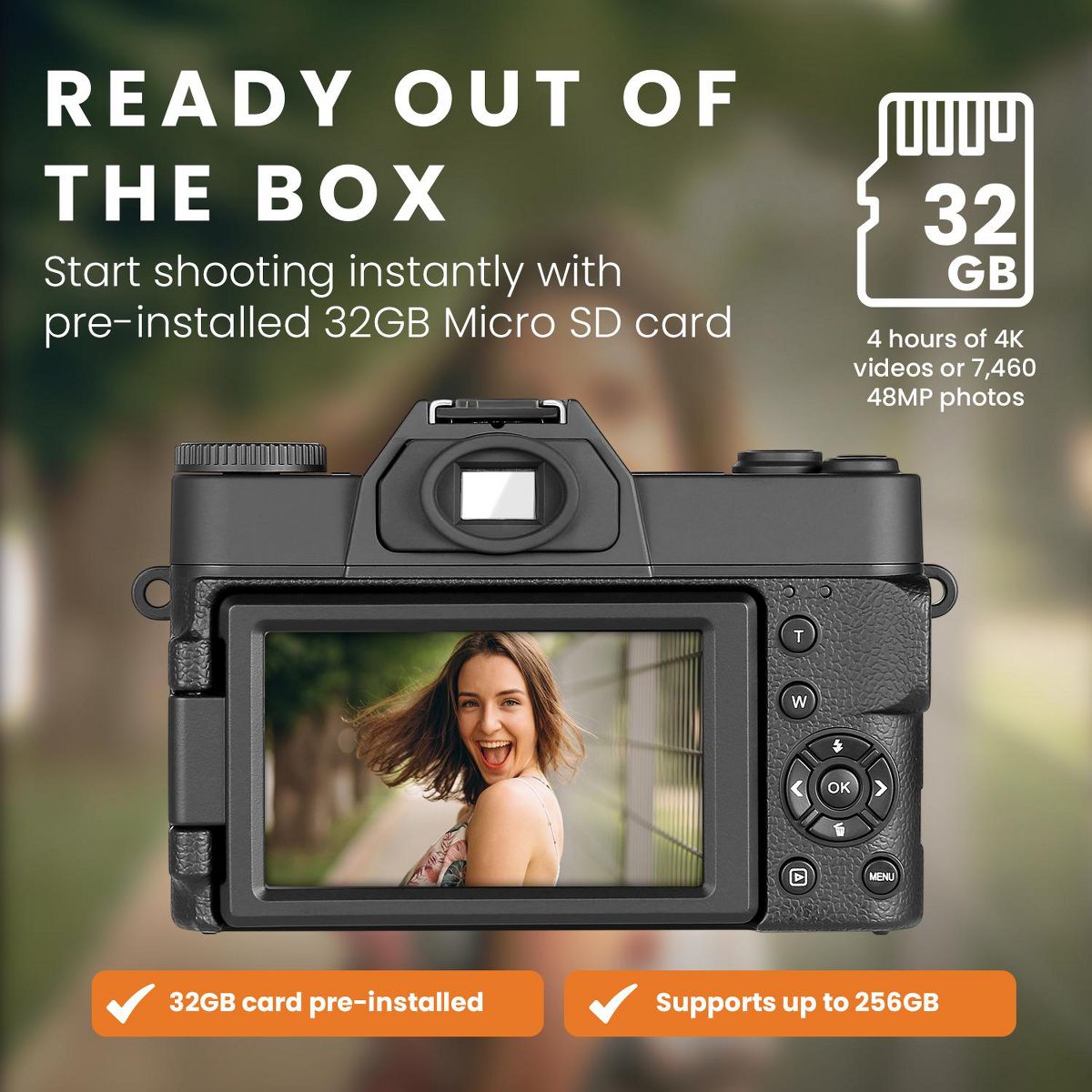 HOM 4K Digital Camera with Interchangeable Lens - 16x Digital Zoom, 3.0" Flip Screen, Autofocus & Wi-Fi Connectivity - 32 Micro SD Card Included
