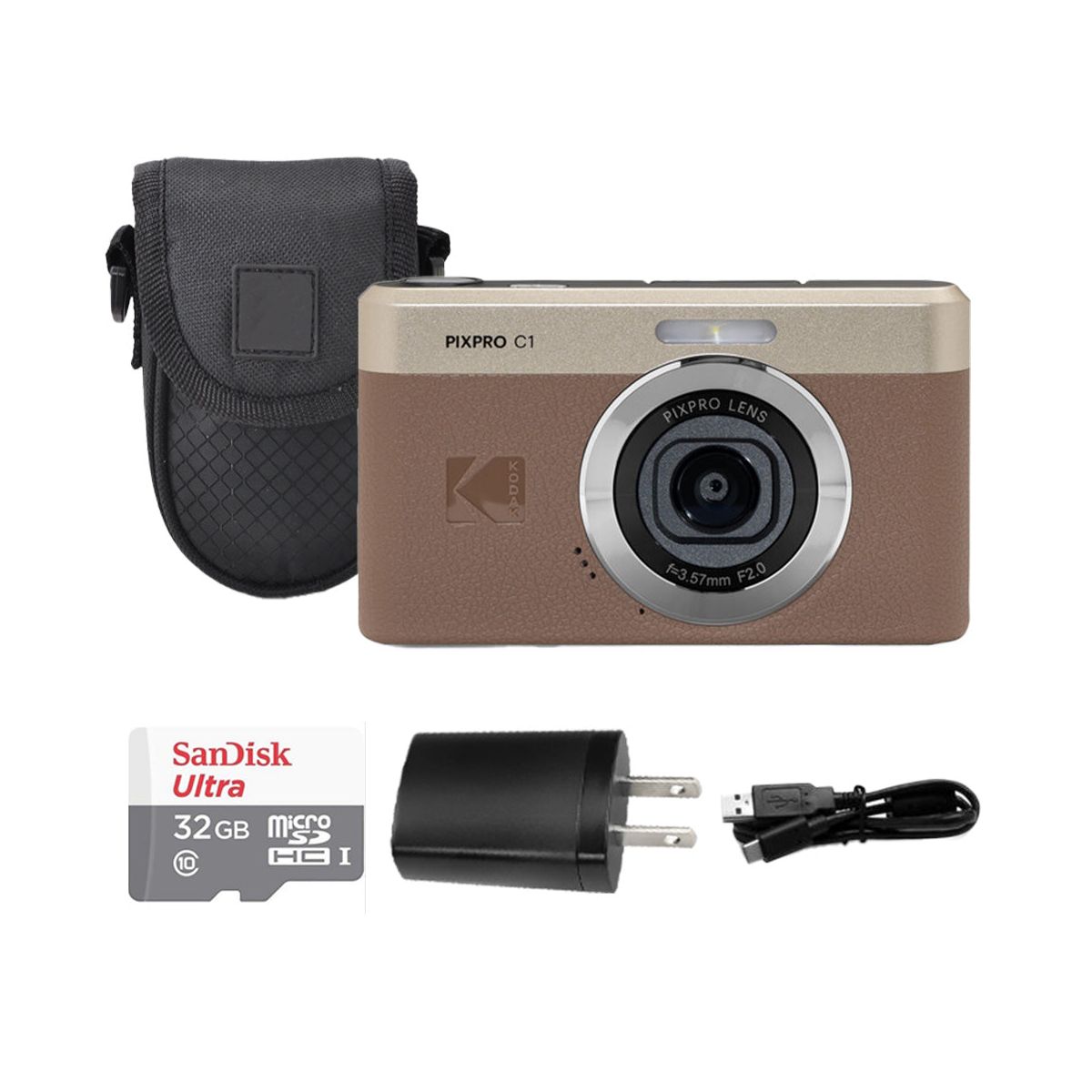 Kodak PIXPRO C1 Compact Digital Camera (Brown) + 32GB Memory Card + Case