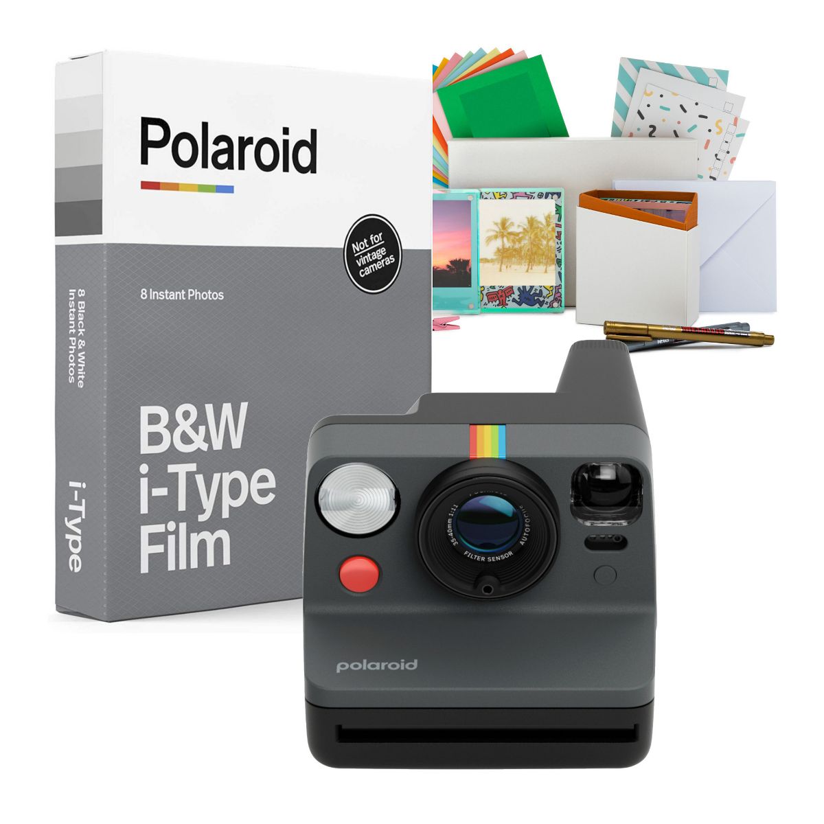 Polaroid Now Generation 3 Instant Camera with Built-In Tripod Mount and Two-Lens Autofocus System (Black)The Polaroid Now Generation 3 Instant Camera in Black has been designed to deliver sharper pictures. With a better light meter position and improved ranging sensor, the camera is equipped to stun you with its picture quality in versatile lighting conditions. An upgraded two-lens autofocus system, built-in tripod mount, and filter compatibility adorns the latest model's list of upgrades, not to forget the self-timer and double-exposure modes. The classic Polaroid design makes not just for a charming look but a sustainable choice, made with 40 percent recycled materials. It is easily rechargeable with USB-C and is compatible with Polaroid i-Type and 600 Films.Focus Camera Film Kit for Polaroid i-Type, 600 and SX-70 with Magnetic Hanging Frames and Storage BoxStore and display your instant photos in style with the Focus Camera Polaroid Film Kit for Polaroid i-Type, 600 and SX-70 Cameras. This set provides magnetic and hanging frames, with matching clips, to display your creations. It also includes a standing storage box that holds up to 50 photos.Store and SendThe Focus Camera Polaroid Film Kit for Polaroid i-Type, 600 and SX-70 Cameras is a fun and creative way to store and display your photos or even give them away as party favors. Shoot and print your photos, and then choose a design. This set provides 3 holographic acrylic magnetic frames and 10 hanging frames of various colors, including pastel and standard colors.Display in StyleThis film kit comes with two types of frames for versatile display options. Magnetic frames allow you to safely and easily protect your photos and stick them on the refrigerator. Hanging frames take advantage of the included matching wooden clothespins to hang your photos from the included hanging rope. This is a great option for parties or just a fun way to decorate.Polaroid B and W Film for i-Type CamerasThe Polaroid i-Type cameras have their own film: it's battery-free (unlike the standard film for vintage cameras), so it's easier on the wallet. Compatible with the OneStep Plus and the Now cameras, plus the Polaroid Lab. There are 8 instant photos in every pack.Store ChilledThe fridge is your movie's best friend. Temperature affects how Polaroid film works. To keep the film fit for recording, we recommend storing it in the refrigerator (not the freezer) and allowing it to reach room temperature (55.4-82.4-degree F / 55–82-degree F) before loading it into the camera.Care for Your CameraClean rollers make photos clearer. Each Polaroid camera has a set of rollers inside the film door. If these rollers are dirty, the chemistry cannot so easily spread across the film frame. If they look dirty, give them a gentle cleaning with a soft, damp cloth.Shoot with LightWhether you're using natural sunlight or a studio setting, always shoot with the light behind you or at your side. If you look at the camera in the light, your photos can end up dark and dull. We also recommend always using the flash for excellent results, even on a sunny day.Develop in the DarkYou need light to get the best picture, but you need darkness for its magic to work. When taking a photograph, thousands of chemical reactions occur within that small film frame. For best results, let your photo unfold face down in a warm area protected from light..