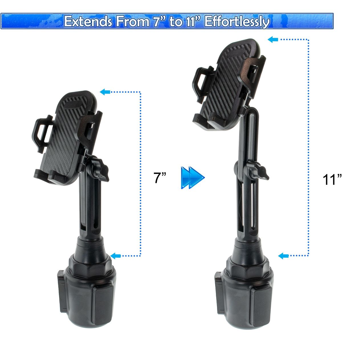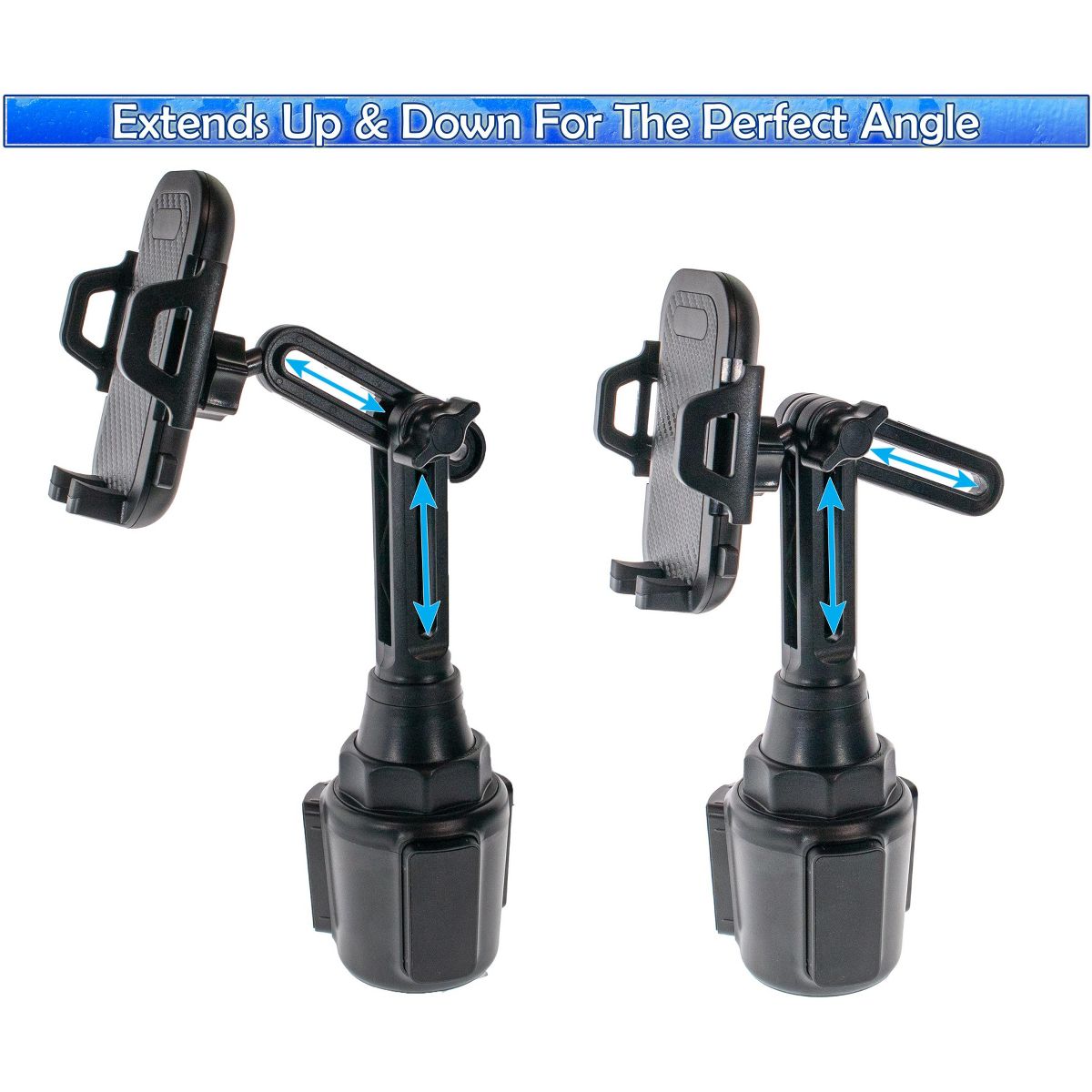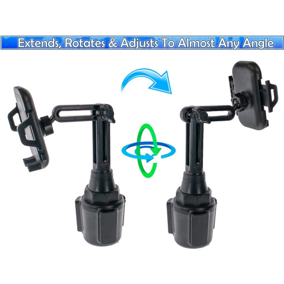 Give your cell phone a comfortable and secure resting place in your car, truck, or any other vehicle with this Adjustable Cup Holder. The adjustable base makes for a perfect fit in most car cup holders. The car cup phone holder with adjustable long pole neck is more stable and flexible than other gooseneck cup phone holders. The total height of the phone cup holder is adjustable from 6.7" to 11" (170-280mm). The 360 degree rotation ball joint and 270 degree tilt pole arm will give you the optimal viewing angle with your phone in this car cup holder phone mount.