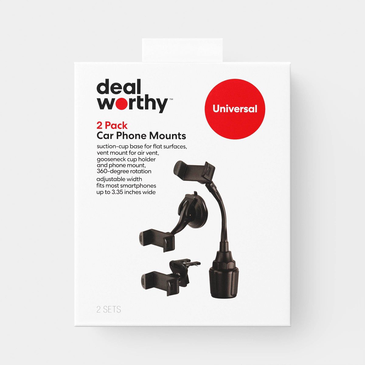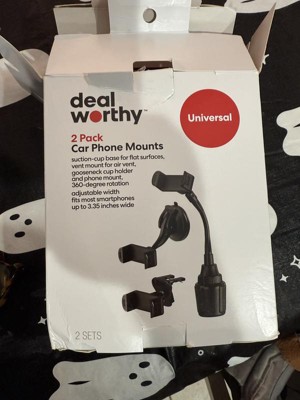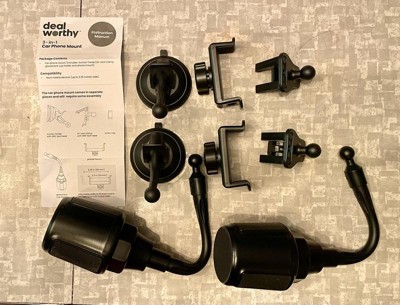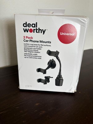 The Car Mount (2-in-1) Matte Finish 2 pk from dealworthy™ Black offers a versatile solution for securing your mobile device in your vehicle. Made from durable material, this mount can be easily attached to either the dashboard or air vent. Its adjustable design ensures a snug fit for various phone sizes, enhancing your driving experience. The compact dimensions make it a practical choice for maintaining a clutter-free car interior.