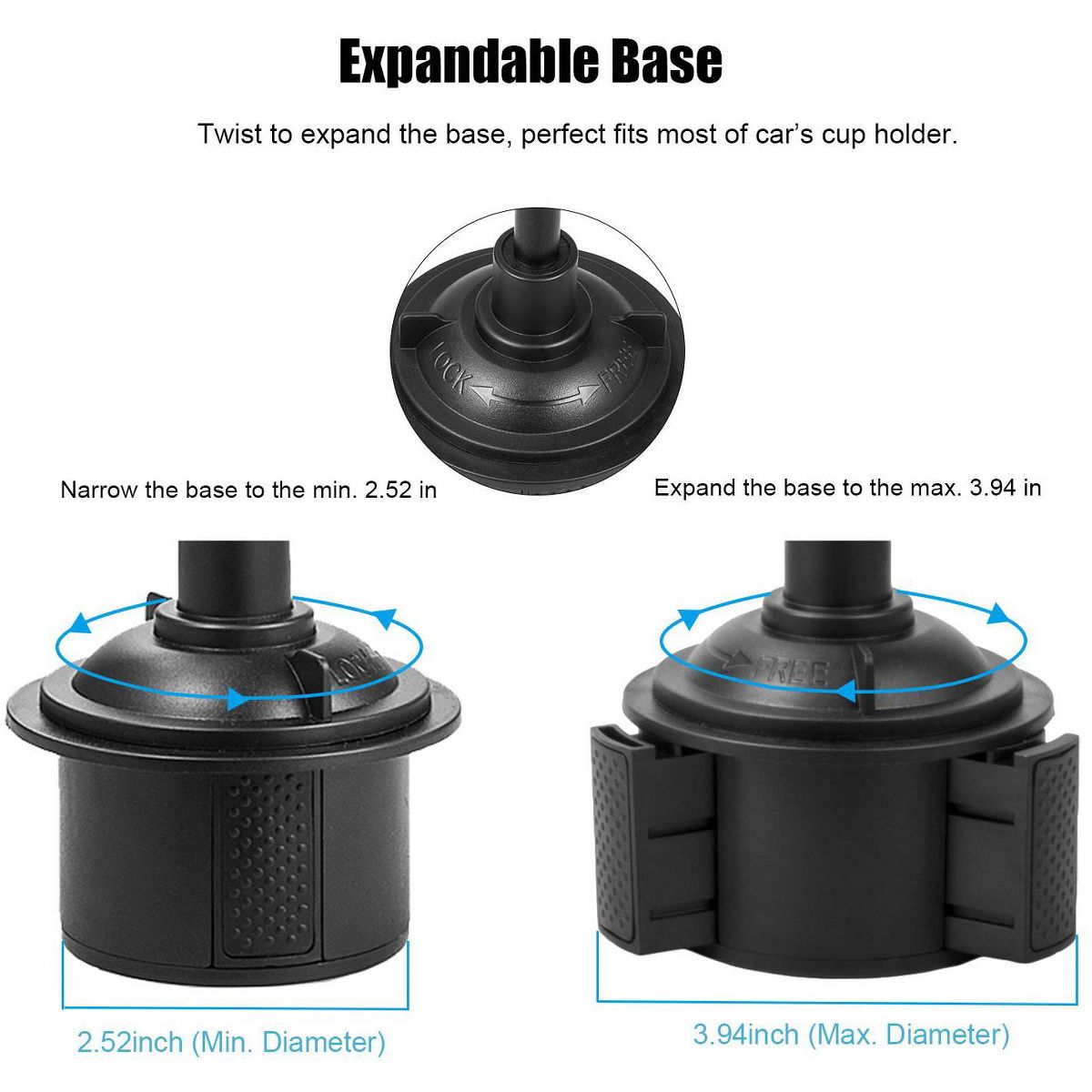 CUP HOLDER: Keep your phone secure and at close range. Insert the base into your car's cup holder. Turn dial and the base will gradually expand - this ensures the base will be ultra secure and not rattle around.