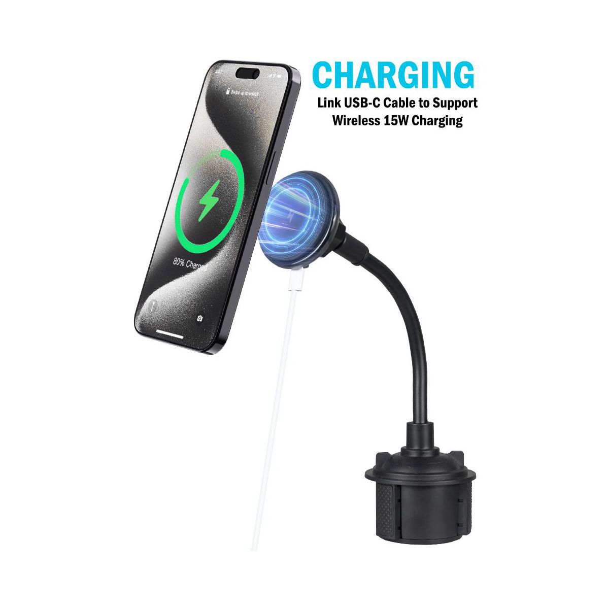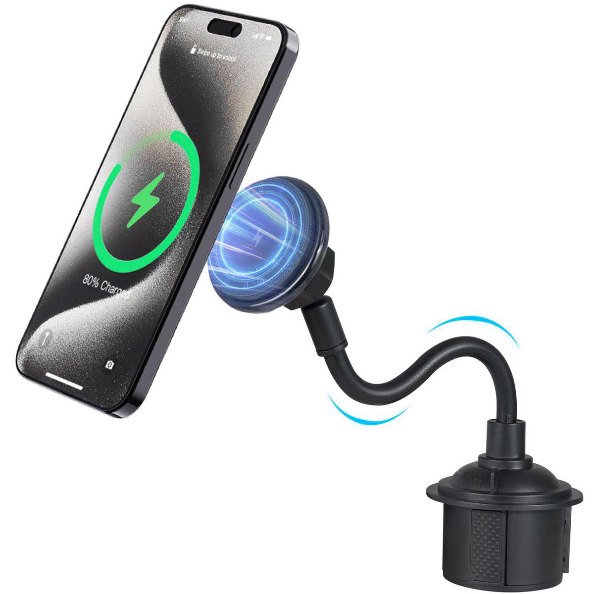 Car Phone Mount Compatible with MagSafe - Nakedcellphone Cup Holder / Charger for iPhone 16 Pro Max 15 Plus 14 Pro 13 etc