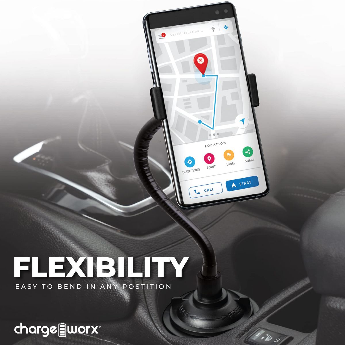 • Convenient & Stable Solution for Your Phone - The Chargeworx CX9707BK Chargeworx 10" Neck Universal Cup Holder Phone Mount is a perfect blend of convenience & stability, offering an ideal solution for users seeking a reliable cup holder phone mount. As a phone cup holder for the car, it securely holds your smartphone in place while you drive, ensuring a safe & hands-free experience. This CX9707BK is a game-changer for those who want to access their phone easily without compromising safety.