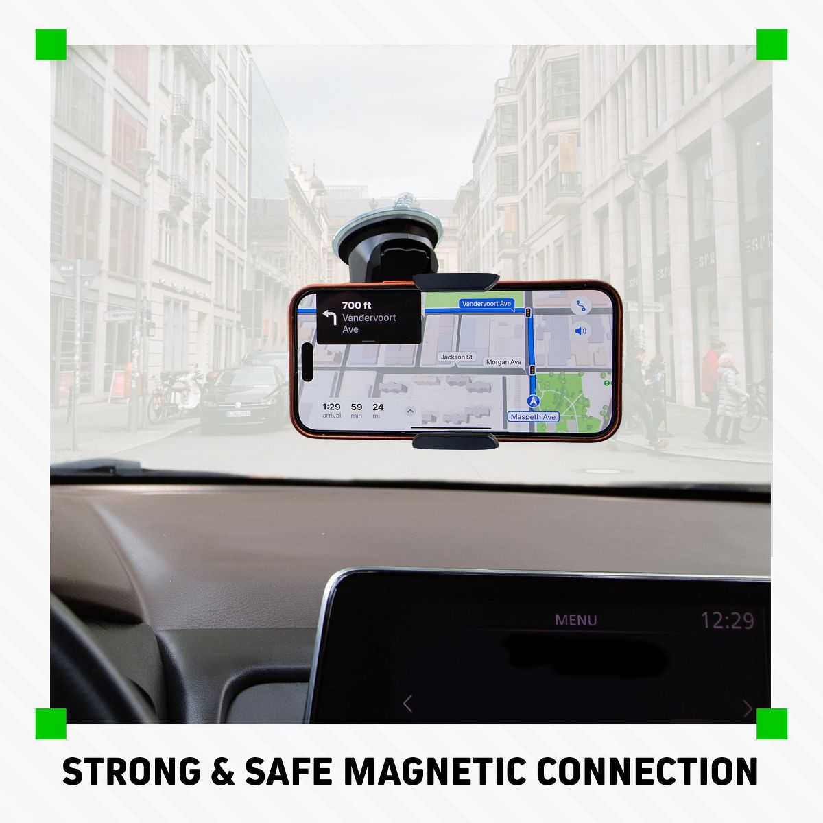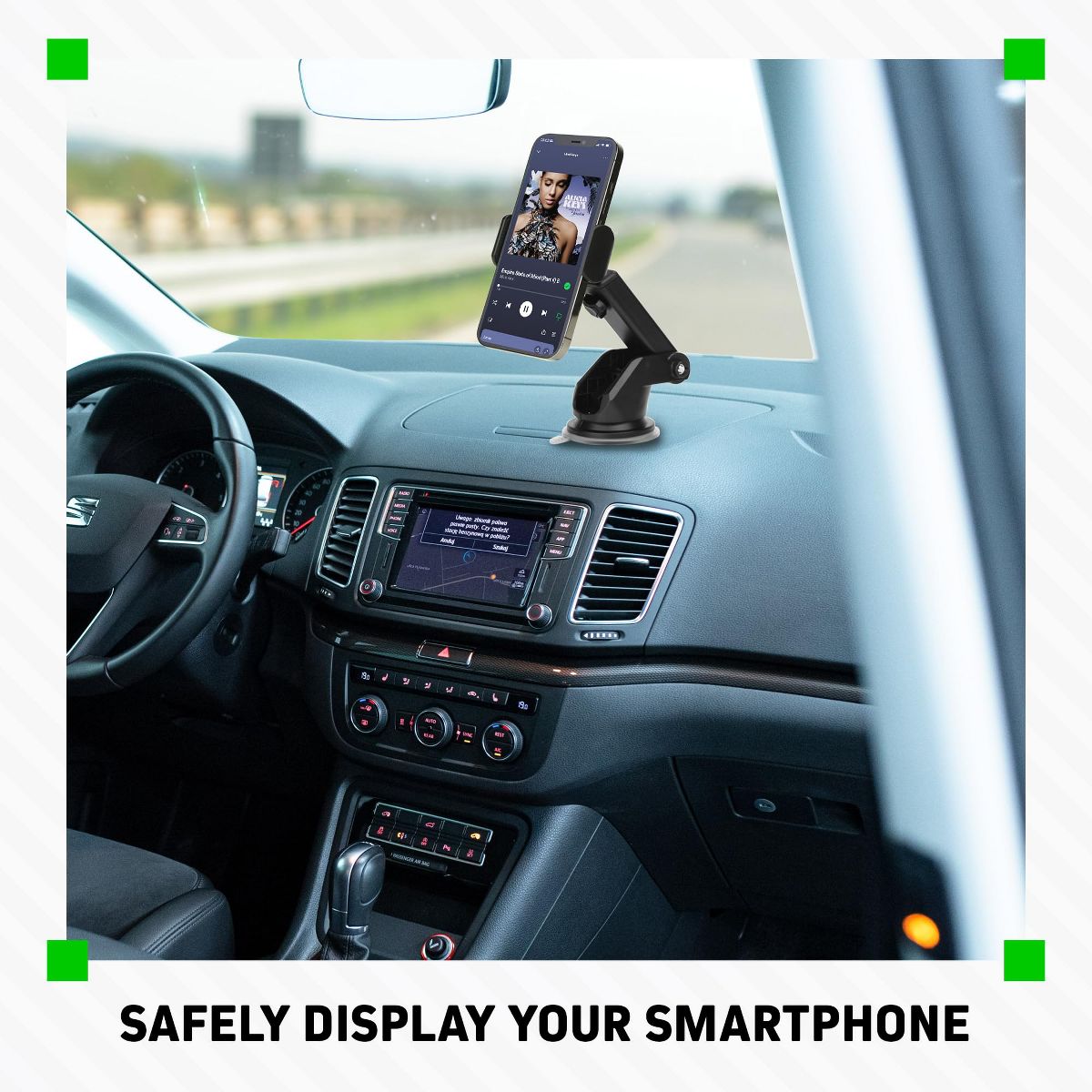 - Strong suction mount holds fast to any dashboard, windshield or desktop, offering peak versatility