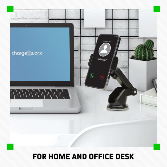 Experience the ultimate in hands-free smartphone utility with our innovative ChargeWorx Suction-Mount Smartphone Holder. Designed with convenience and functionality in mind, this versatile tool offers an array of features that will revolutionize how you interact with your smartphone in your car, at home, or at the office. Fully adjustable design allows you to effortlessly switch between Portrait or Landscape orientation, ensuring a seamless transition between your favorite apps, videos, and navigation tools. Extendable arm provides the flexibility to position your phone exactly where you need it, whether on the dashboard, windshield, or even on your desk. Enjoy unrestricted freedom with 360?ø rotation, enabling you to effortlessly switch between landscape and portrait mode on the go. Experience unmatched convenience as you seamlessly adapt your phone's orientation to meet your changing needs, whether it's for GPS navigation, video calls, or simply catching up on your favorite content. This combination of features ensures you can view your screen at the perfect angle for any situation, whether at home or on the road. Keep your phone safe and secure without compromising functionality. The extra-strong phone grip is engineered with an anti-scratch surface, providing a gentle yet firm hold on your smartphone. Rest assured that your device is safe from unwanted slips and scratches, even during bumpy rides or sudden stops. Installs in seconds on any smooth, flat surface. Powerful suction technology offers a steadfast hold wherever you install the mount, ensuring a strong and reliable attachment, no matter where your adventures take you. Transform the way you multitask with the ChargeWorx Suction Mount Smartphone Holder. Enjoy the convenience of a secure and adjustable grip that always keeps your device accessible and visible. Upgrade your device interaction today and make the most out of every moment with this game-changing accessory.