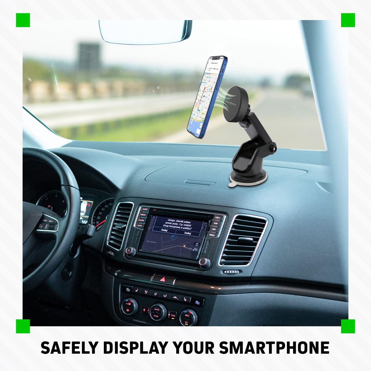 Designed for convenience and reliability, this ChargeWorx smartphone mount offers a powerful and secure magnetic hold, allowing you to keep your phone firmly in place while you navigate, communicate, or enjoy media on the go, while the adjustable neck extends up to 7 inches, providing optimal viewing angles for your comfort. With its strong suction cup, this mount adheres firmly to any smooth surface, whether it's your car's dashboard, your office desk, or even the walls of your home. On top of that, the mount is compatible with most smartphone cases and effortlessly supports both landscape and portrait modes. Even non-magnetic smartphones can benefit from this mount, as the package comes with plates that enable secure attachment! Versatile and reliable, the ChargeWorx Universal Magnetic Smartphone Mount is a must-have accessory for anyone seeking convenience and stability in their daily smartphone usage!