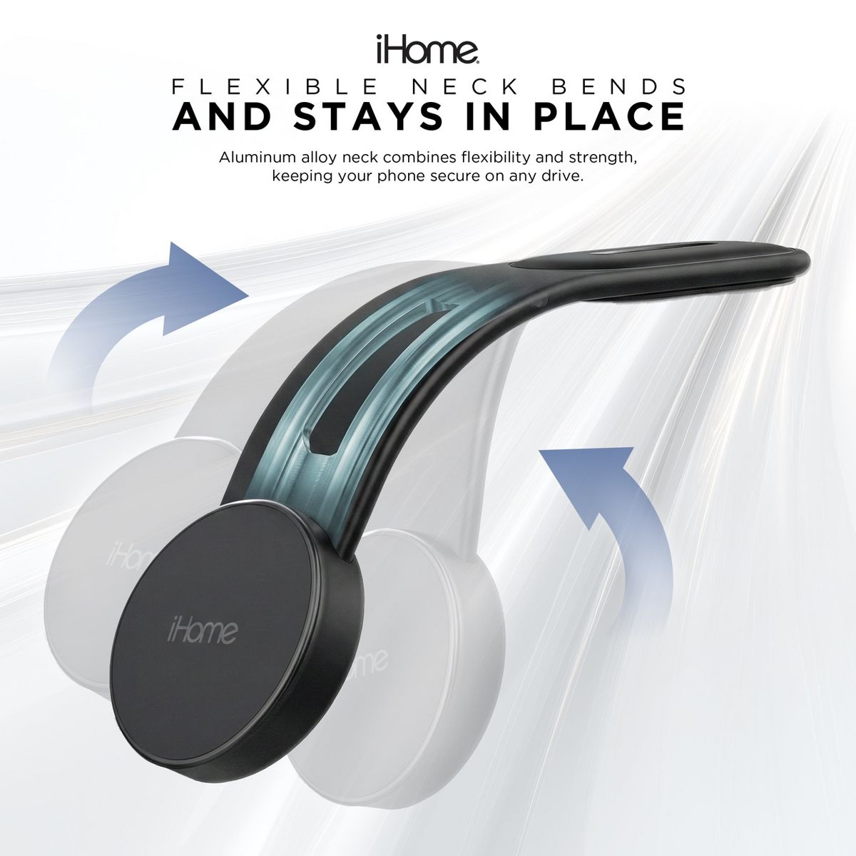 iHome Magnetic Charging Flexible Dash Mount, 15W Fast Charging, Adjustable Memory Aluminum Alloy