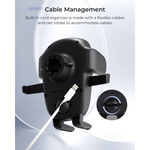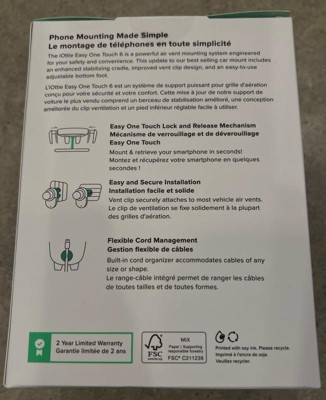The Easy One Touch 6 Air Vent & Flush Mount is a universal car phone holder engineered for your safety and convenience. Featuring our unique Easy One Touch system, you can mount and retrieve your mobile phone in seconds with a quick, one-handed motion. Simply squeeze the release bars to open the mount cradle, then press your phone against the Easy One Touch trigger button. The self-centering arms will close automatically. The enhanced stabilizing cradle maintains a fixed position so your phone stays locked in place – even on rough roads – and gives you access to your phone’s charging port at all times. The Easy One Touch 6 quickly and securely installs on both horizontal and vertical air vent blades where rubber prongs provide a vise-like grip and prevent the car vent phone mount from slipping. Keep your charging cable neatly stowed away when not in use thanks to the built-in cord management system, which rotates and flexes to hold cables of any size or shape. The adjustable bottom foot makes it easy to accommodate larger phone and case combinations, while the rotating ball joint helps you find the perfect viewing angle. Driver smarter with the Easy One Touch 6 Air Vent & Flush Mount!