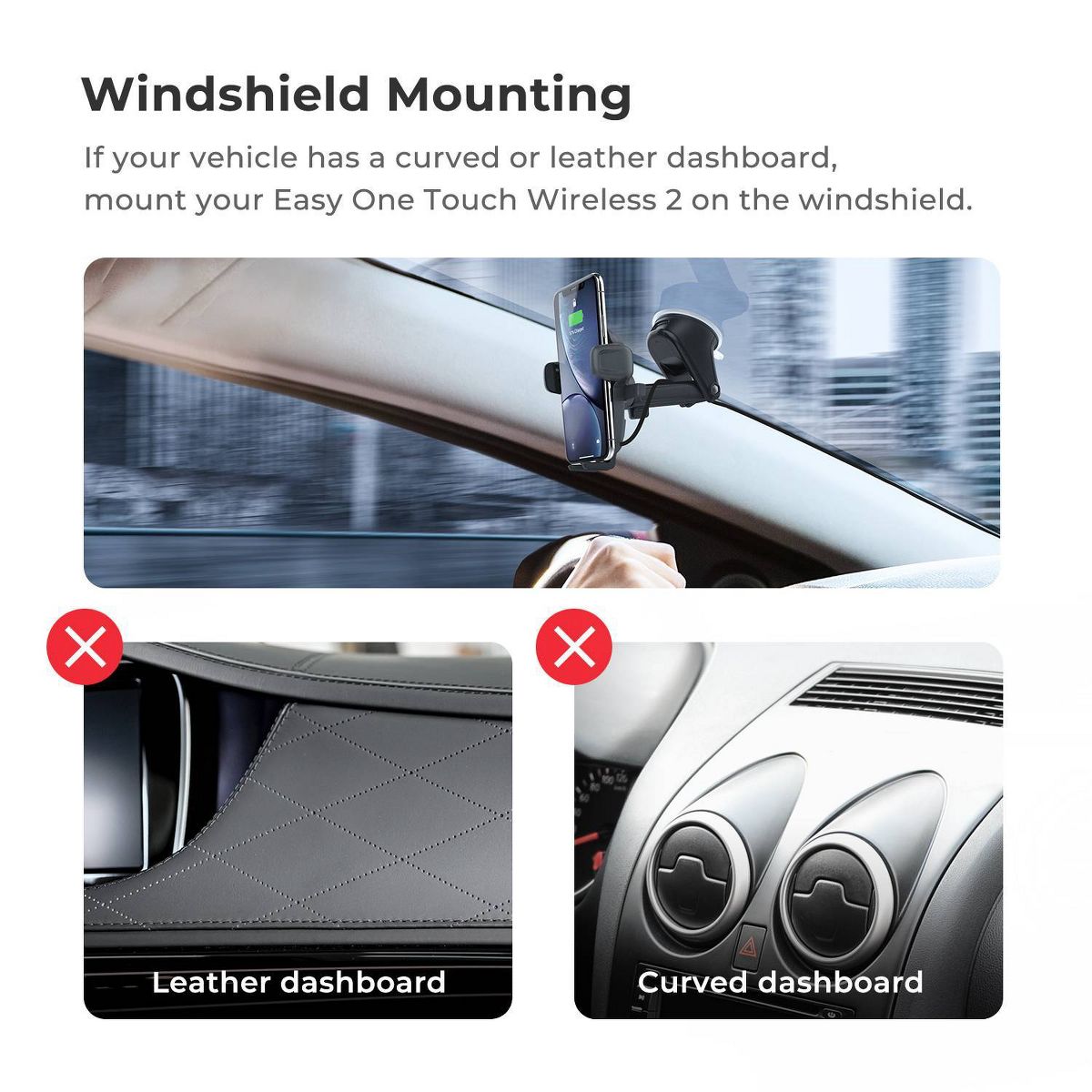 The Easy One Touch Wireless 2 Dash and Windshield Mount from iOttie delivers power and versatility on the road for a safer driving experience in any vehicle.