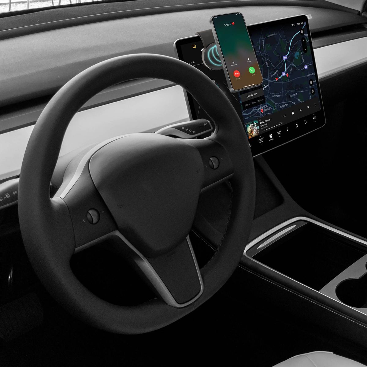 We like the minimalist design of this charger a lot and it does fine charging our phones. We had some issues getting the adhesive to work properly and it has come unstuck a couple times when the interior of the car gets very hot. However when it’s working the charger/stand is great. I like being able to adjust it to lay flat, or stand up which is better for when we’re using navigation.
