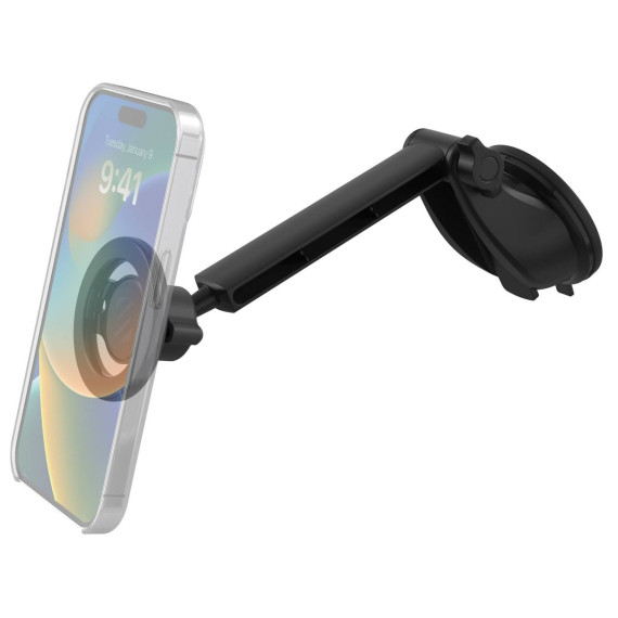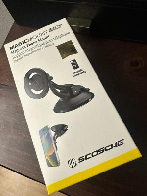Scosche SMSWDEX-SP MagicMount Magnetic Dash/Windshield Mount Suction Cup Base Comp. w/ MagSafe. Upgrade your driving experience with Scosche's MagSafe Dashboard/Windshield mount. This magnetic mount adds style to your vehicle while prioritizing safety. It securely holds your phone in clear view, enabling safer hands-free use while you drive. Perfect for iPhone 12 and later models, this MagSafe car phone holder leverages the power of built-in MagSafe magnets to offer a secure grip. But that's not all! Enjoy peace of mind knowing this Windshield/Dash Magnet Mount for your car is Backed by Scosche's lifetime tech support and limited lifetime warranty.