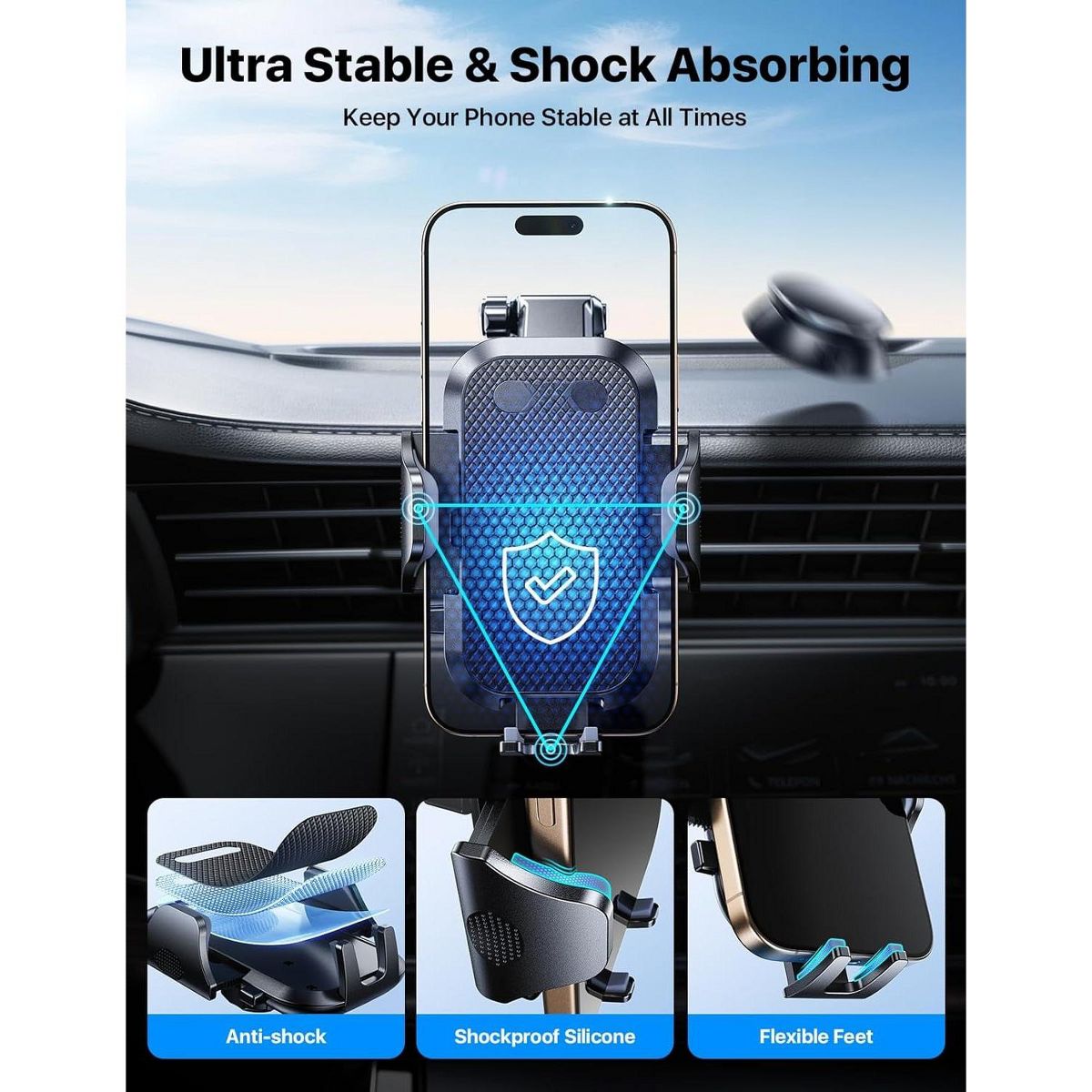 [Super Suction Cup|Never Drop, No Residue, Rough Road Friendly] Engineered with 2026-Upgraded Fluorosilicone + Nano-Adsorbent Technology, our cell phone car mount delivers 80% stronger suction than average car holders, securely gripping up to 89 LBS—even on bumpy roads or extreme climates (-40°F to 203°F)! Just rinse with water to restore the stickiness.
