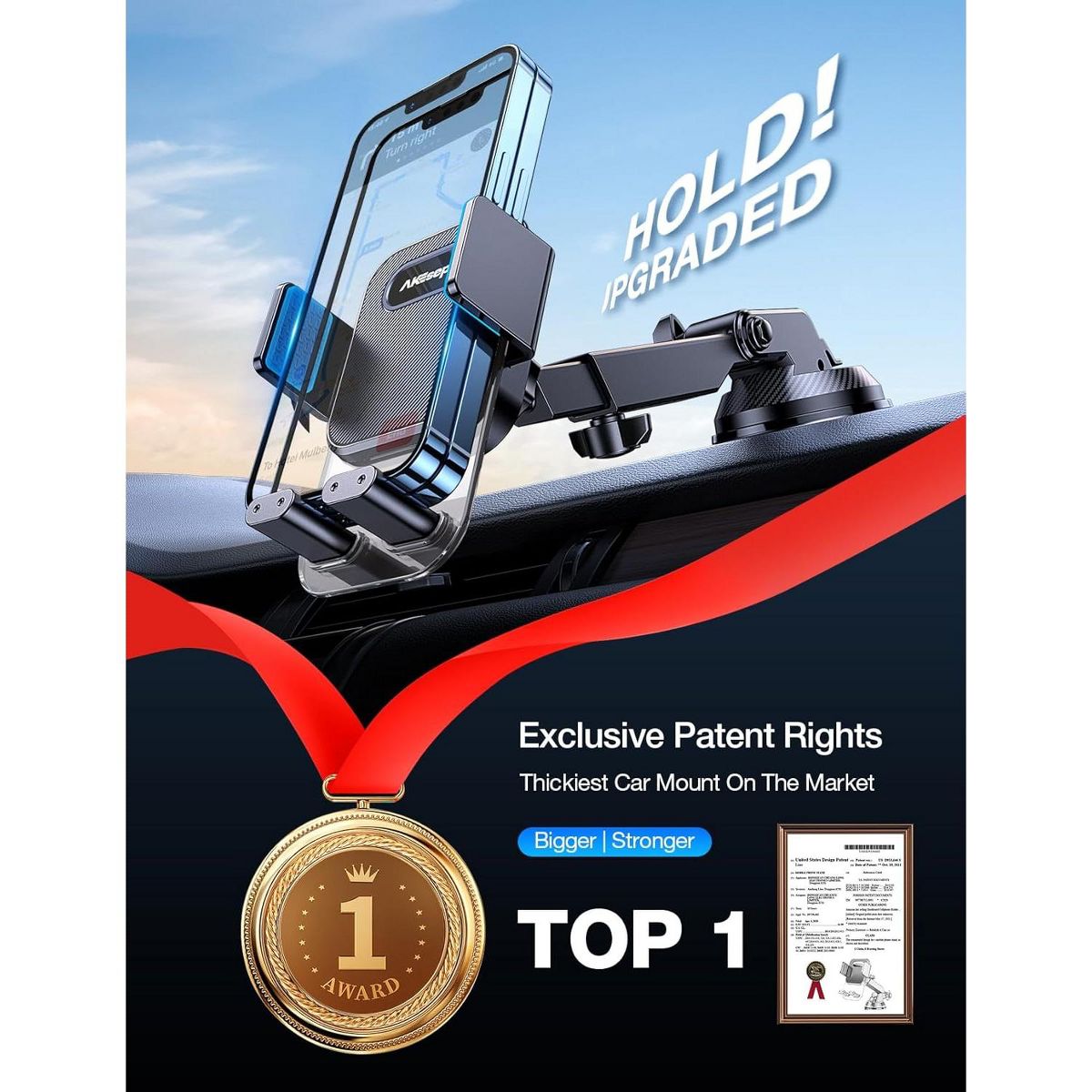 [Best Experience Come From Perfect Ergonomic Design] ①Original Lower-Back Release Button with Location Points: Won’t excessively bend fingers as side button, Most Comfortable for Any Finger, esp with big phones ②Original Thickened Fixed Cradle Legs: Upgraded from flimsy drop-down bottom legs, Safely Support Any Weight Phone on the Bumpy Road ③Original 0.96” Width Widened Cradle Legs: 1.6X Wider than others.