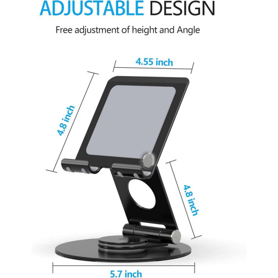 TEMI Aluminum 360° Rotating Tablet Stand - Adjustable for All 4-12.9" iPad, Surface, Kindle & Phones. Black