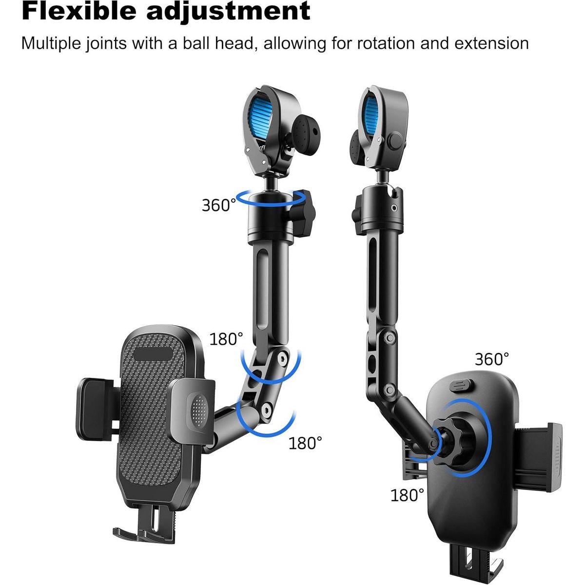Easy Installation: Installing our phone holder is a breeze. It requires no complicated setup. Simply attach it to your rear view mirror using the adjustable clamp., saving you time and effort.