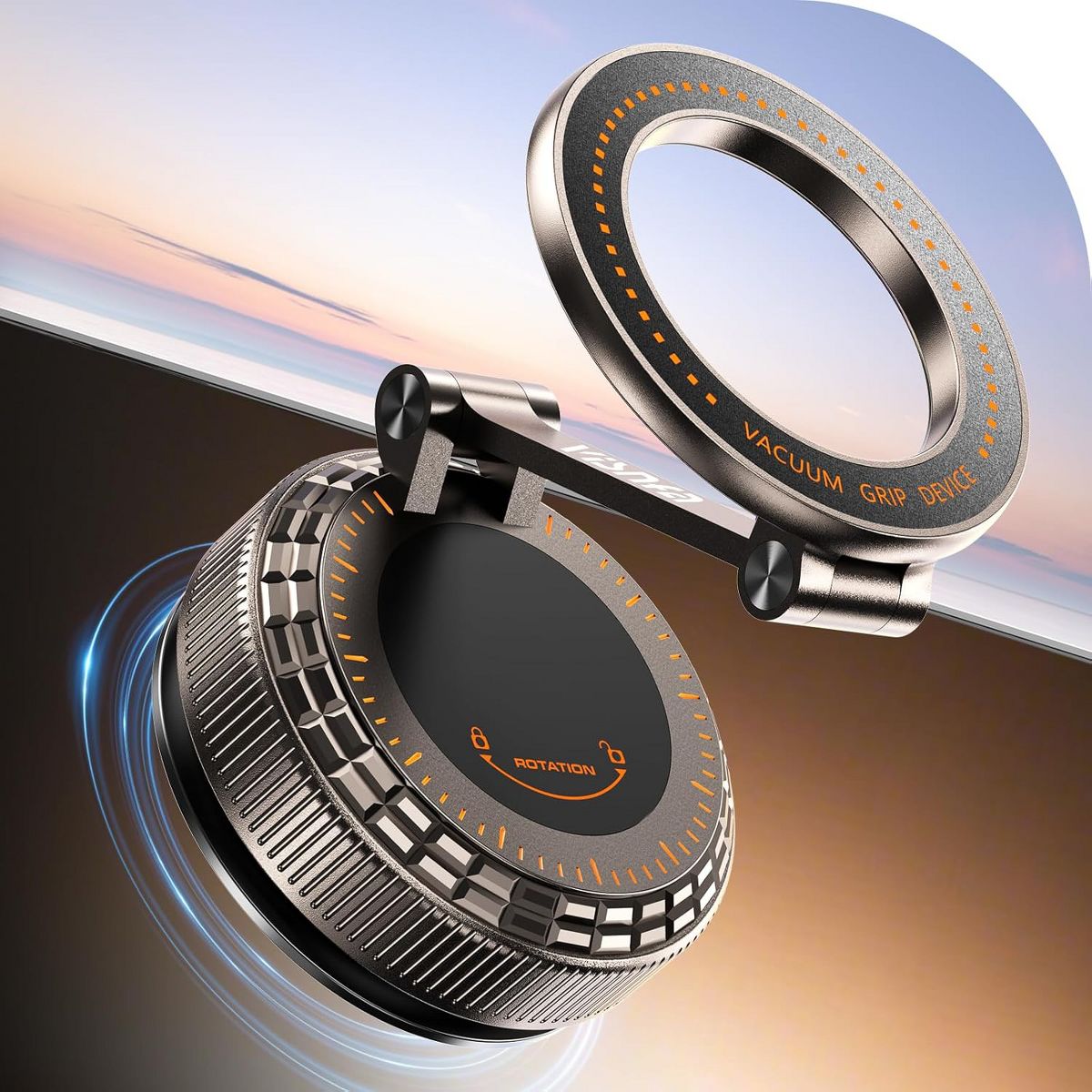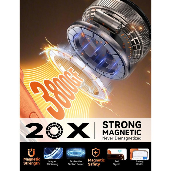 Super-strong magnetism, ultimate stability: The vacuum magnetic phone holder features a built-in upgraded N56 neodymium magnet with a powerful magnetic force of 3800GF. It can safely hold devices as heavy as the iPhone 17 Pro Max. The car phone holder mount utilizes a gear structure and top-tier structural strength made of 100% zinc alloy, making it fully capable of handling all kinds of challenging road conditions and weather. The more you shake it while driving, the stronger the attraction becomes. Furthermore, it causes zero interference to phone/GPS signals