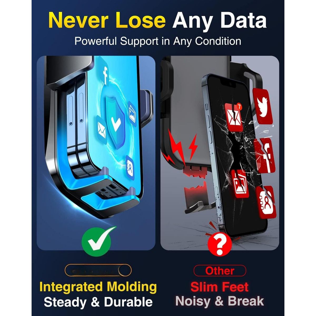 【 】①Original Lower-Back Release Button with Location Points: Won’t excessively bend fingers as side button, Most Comfortable for Any Finger, esp with big phones ②Original Thickened Fixed Cradle Legs: Upgraded from flimsy drop-down bottom legs, Safely Support Any Weight Phone on the Bumpy Road ③Original 0.96” Width Widened Cradle Legs: 1.6X Wider than others.