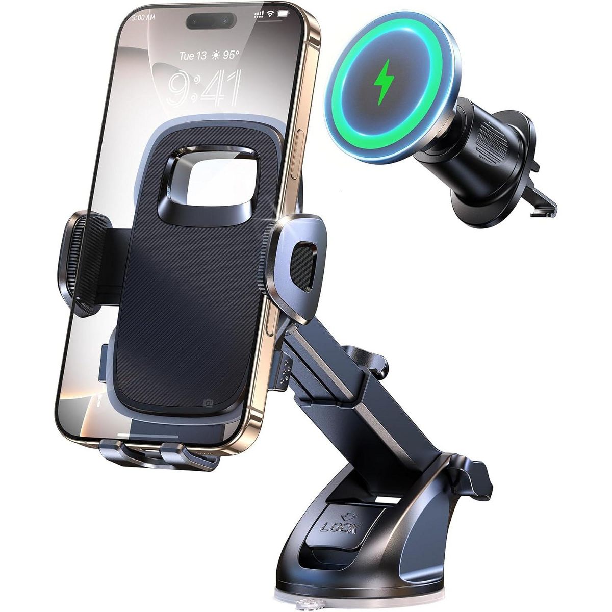 TEMI Military-Grade Super Suction Phone Mount for Car Dashboard, Windshield & Air Vent - Universal Fit for All Phones. C-DashVentWindshield+Qi2Charger