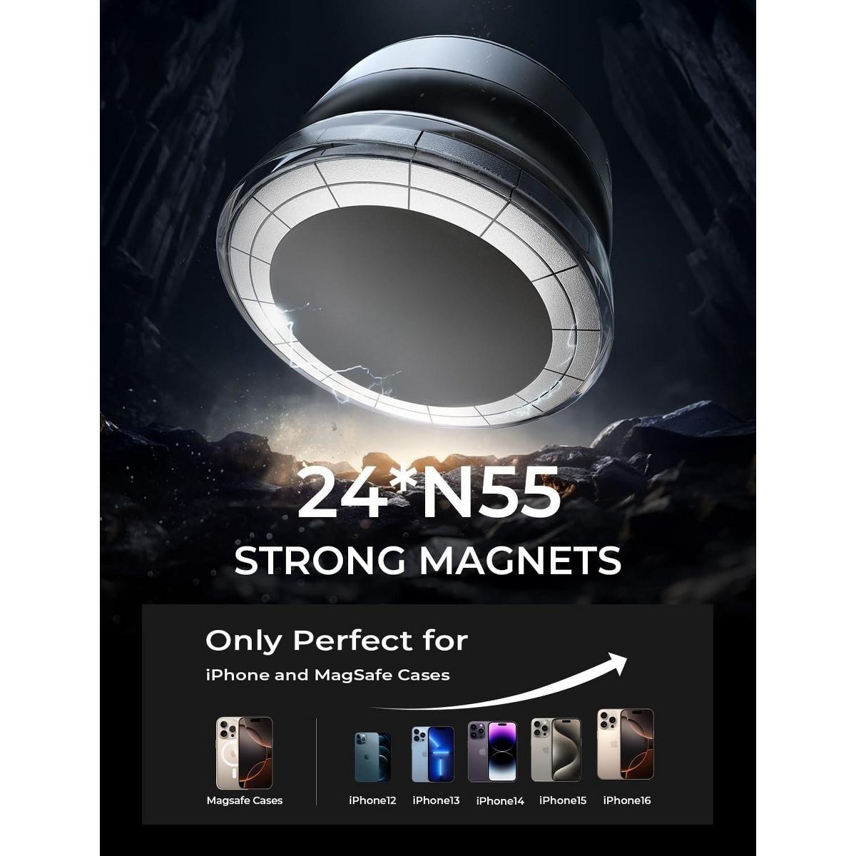 [Irresistible magnetic force] Built with 24 high-performance N55 magnets, this magsafe suction phone mount delivers unparalleled magnetic strength to keep your device securely in place, even on the most bumpy terrains for Content Creator. This magnetic suction phone mount is fully compatible with iPhone 12-16 series. For non-MagSafe devices, a MagSafe-compatible case is needed to ensure optimal performance for Content Creator.