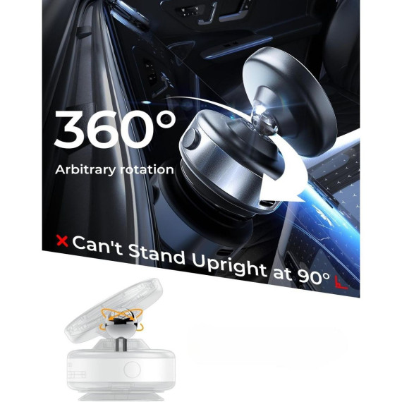 [Various adjustable angles] The 360° rotatable head allows for seamless adjustment, enabling Content Creator to achieve the perfect viewing angle for navigation, video calls, or photography. Symmetrical design of the vacuum magnetic car phone mount enhances stability by 2x compared to telescopic version, minimizing the risk of drops and safeguarding your premium device for Content Creator.