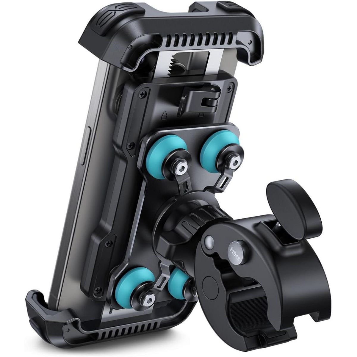 TEMI Phone Mount with Dual Vibration Dampener - Upgrade Handlebar Clip for iPhone & 4.7-6.7" Phones. Black