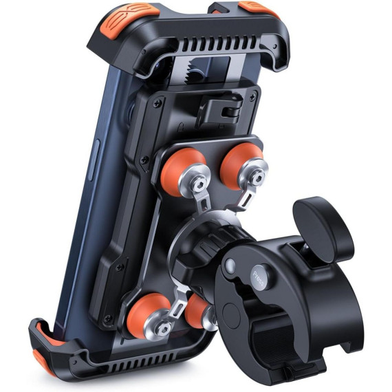 【 Shock Absorption Silicone】 The four corners of phone clamp are covered with cushioned rubber pads, protect your phone from crashing. The handlebar clip is also covered with no-slip pads, making sure your phone stays secure and visible during riding. Ensuring your phone stays protected even at high speed.