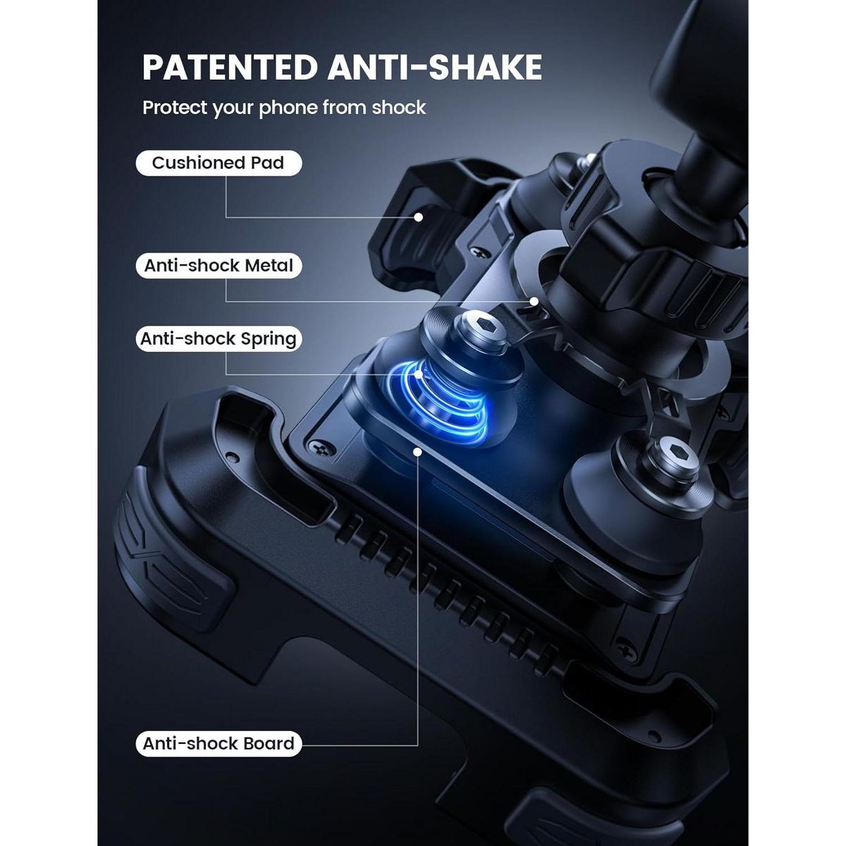 【 Patent Anti Shake】 The phone mount equipped with patented vibration dampener, effectively reducing the vibration generated when the engine is running at high speed. The four damping springs on the metal board can effectively absorb vibrations, protecting your phone camera from being damaged.
