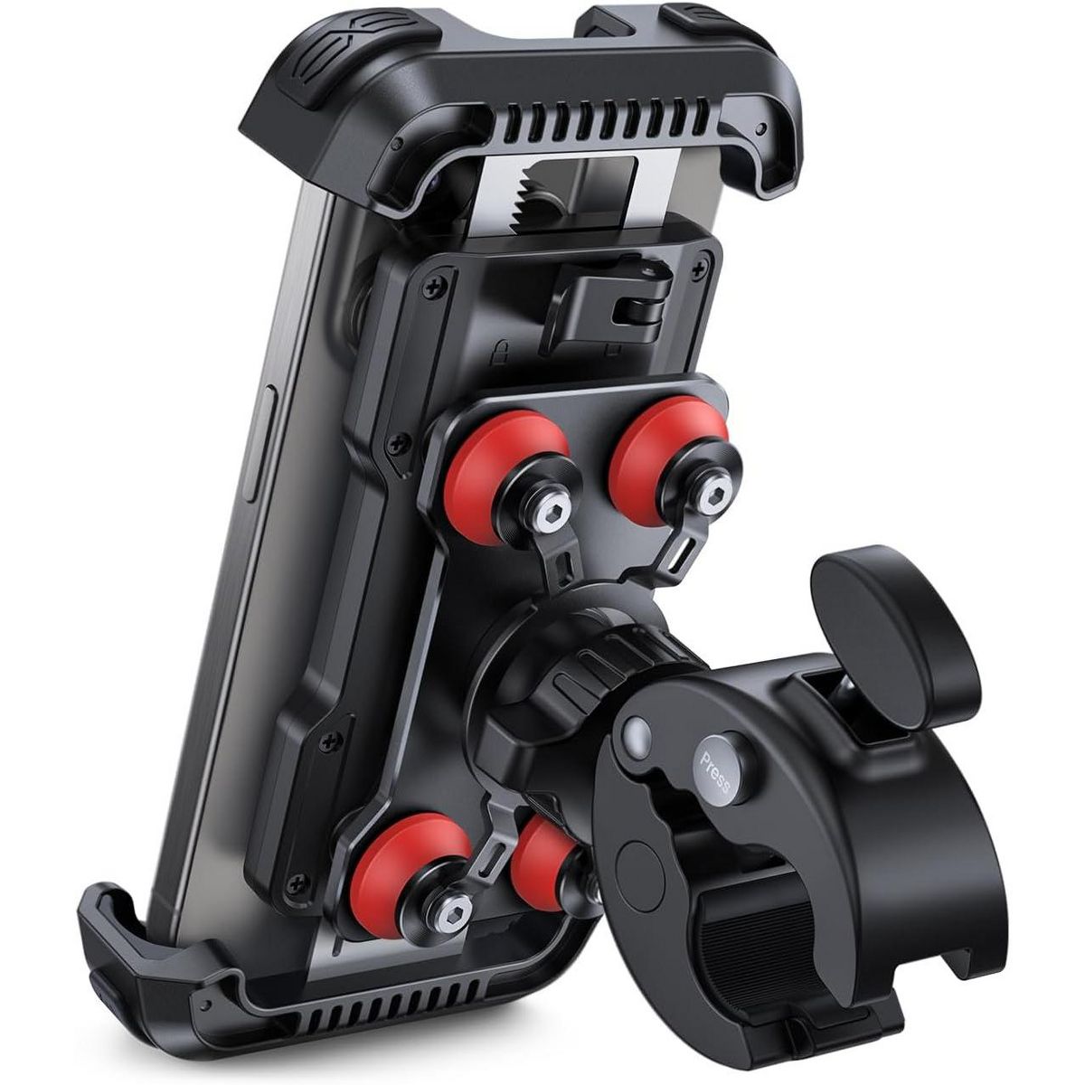 TEMI Phone Mount with Dual Vibration Dampener - Upgrade Handlebar Clip for iPhone & 4.7-6.7" Phones. Black