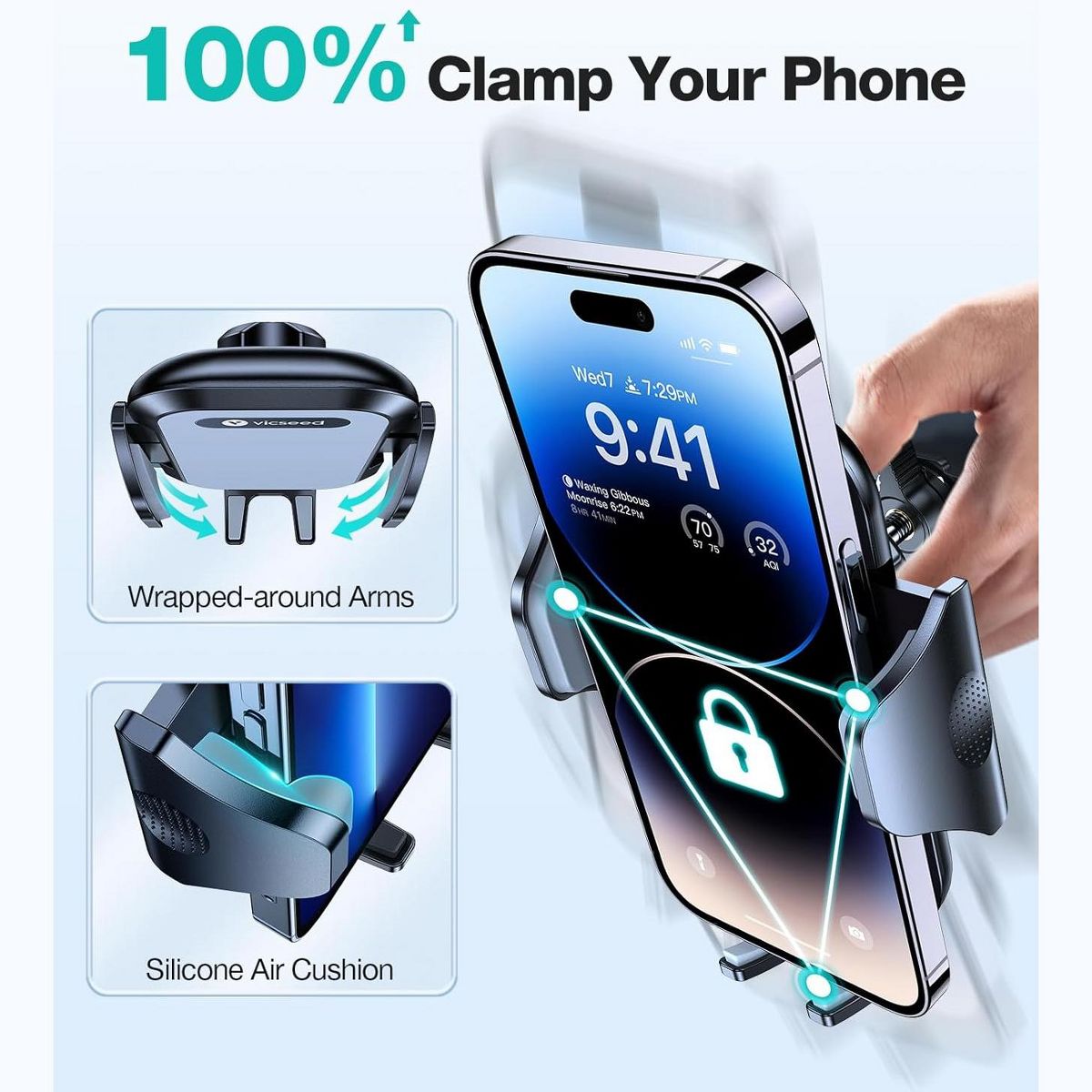 【2025 Newly Upgraded Car Phone Holder】After 10 years of technology iteration, Vicseed car phone holder adopts aerospace material PTFE, say goodbye to the trouble of high temperature deformation and falling off of plastic car mount.Built-in metal air vent clips and silicone panels not only increase stability by 300%, but also protect your phone and car vents.The world's first extreme-tested cell phone car mount, trusted by 9.5 million car owners worldwide