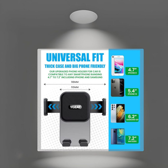 Universal Fit: Ensure the cell phone holder for car can accommodate a wide range of phone sizes, from small smartphones to larger devices, including those with bulky cases. Look for mounts that can fit various phone brands and models, ensuring it will work with your current phone and future upgrades Soporte universal para teléfono de coche.