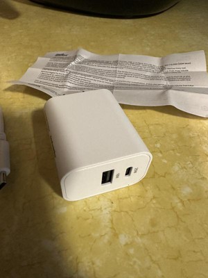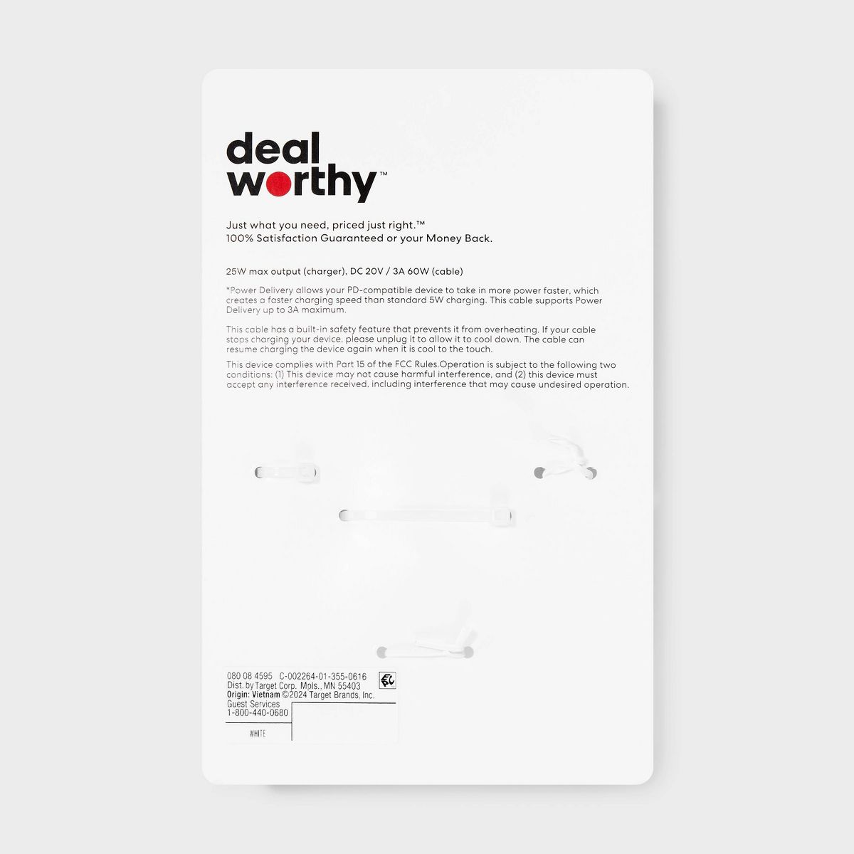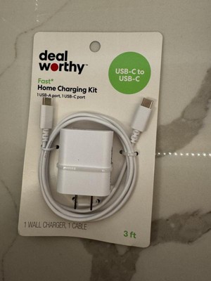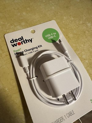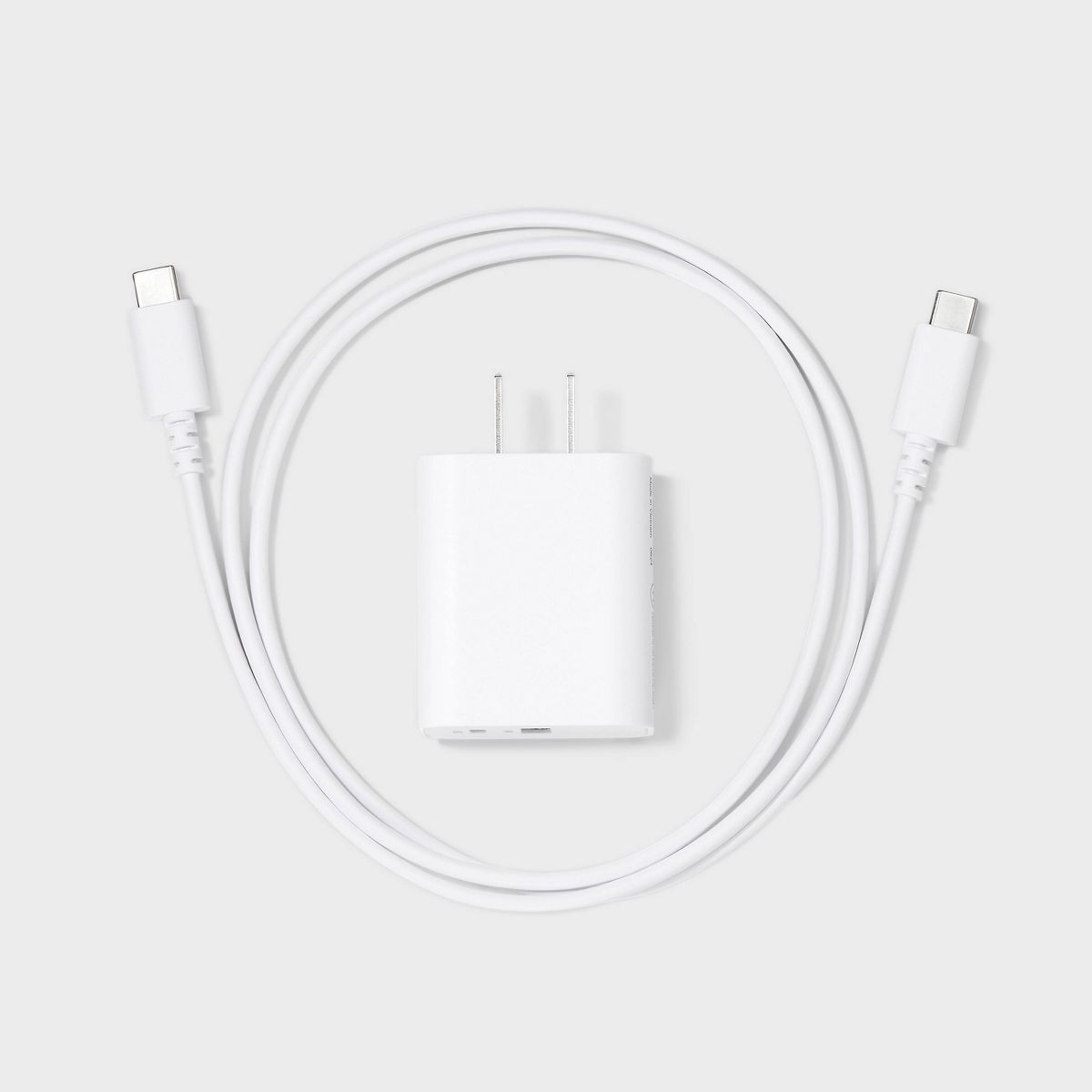 2-Port 25W Wall Charger with 3' USB-C to USB-C Cable - dealworthy™ White: Dual USB-C Output, Quick Charge