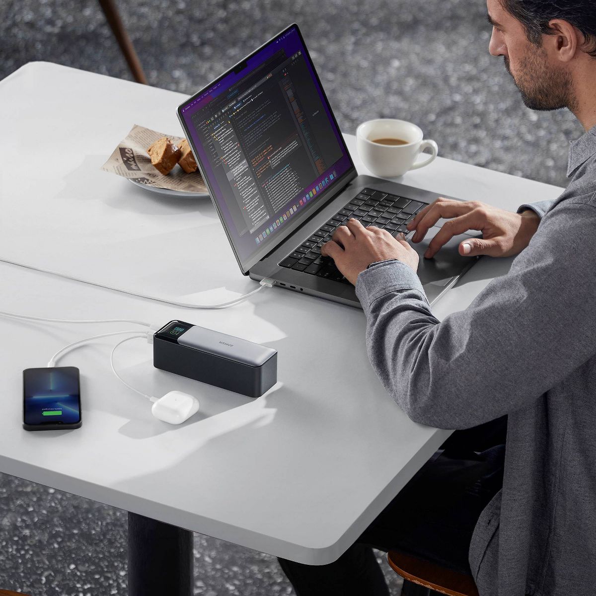 Harness the power of Power Delivery 3.1, boasting a remarkable 140W output for lightning-fast recharges of laptops, tablets, and phones. Charge a MacBook Pro 14" up to 80% in just 51 minutes, or achieve the same with a 140W charger in a swift 40 minutes. Stay informed with real-time insights, showing power levels, estimated full charge times, and power bank temperature. With a generous 24,000 mAh capacity, charge a MacBook Air 1.3 times or multiple iPhones on the go. Designed for convenience and compliance, it adheres to boarding regulations while maintaining exceptional portability. Connect to any port for optimal charging efficiency. Our intelligent temperature monitoring system ensures safety with a consistent temperature 10% below international guidelines. Embrace the future of charging with unparalleled performance and safety.