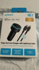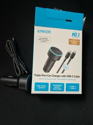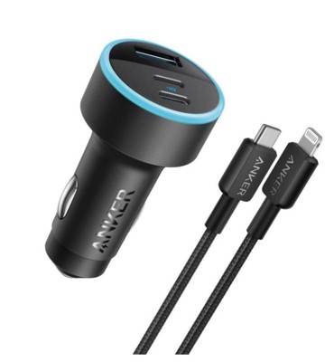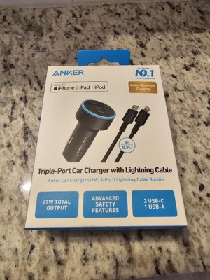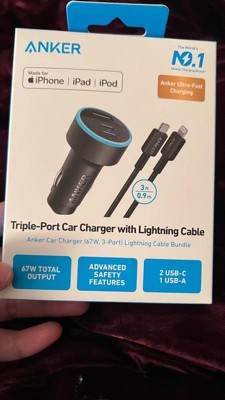Anker 3-Port 67W Car Charger with 3' Lightning to USB-C Cable - Black