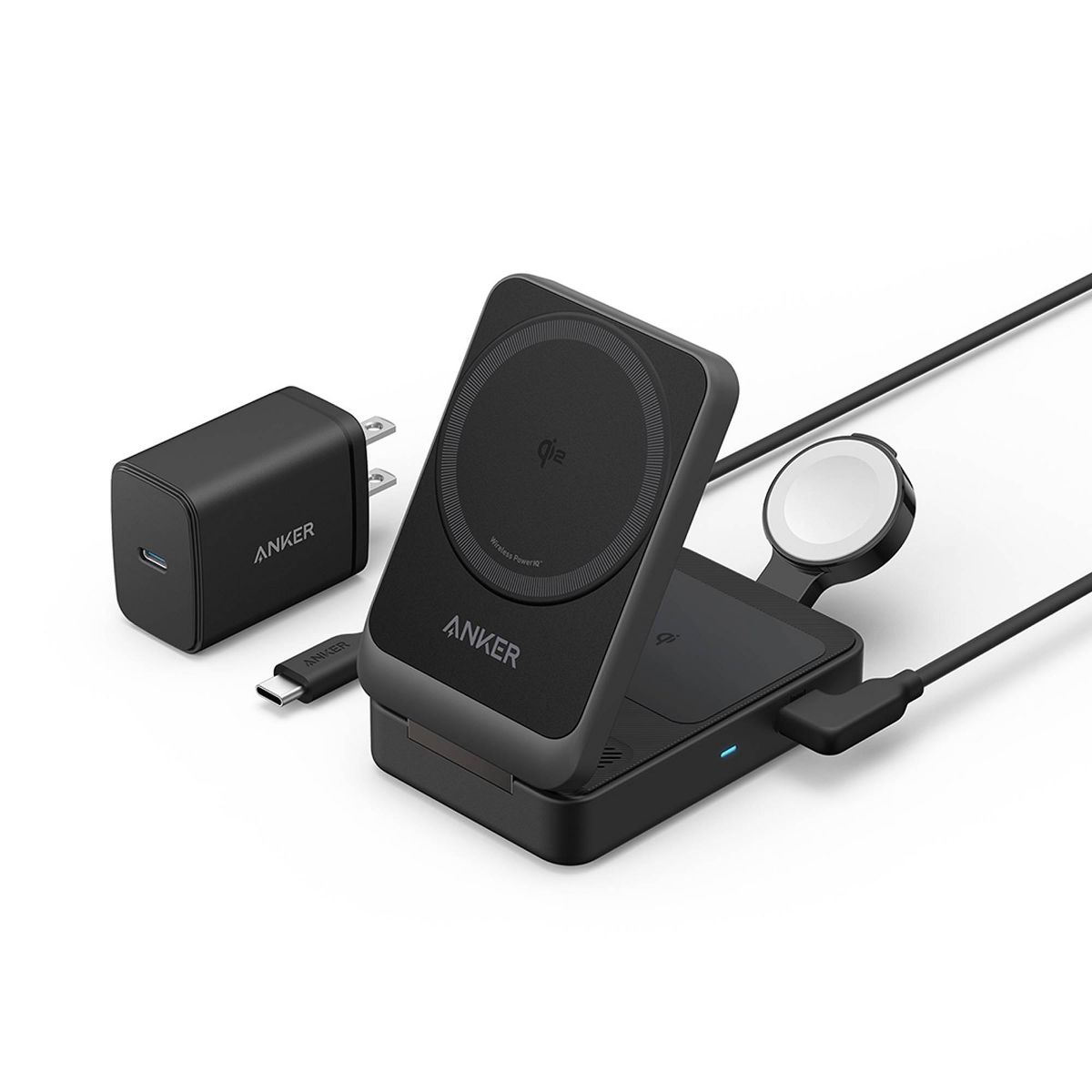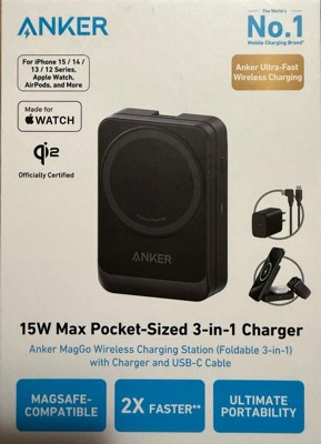 Anker MagGo Wireless Charging Station (Foldable 3-in-1): USB-C for Apple Devices