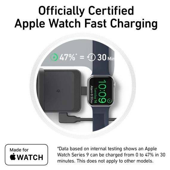 Introducing the latest in charging innovation, our Qi2 Certified Charging station delivers an unprecedented 15W of power for a lightning-fast and secure charging experience. Weighing only 6.9 oz and folding down to the size of a deck of cards, this ultra-compact design is a game-changer for those on the go. Time Keepers rejoice as our MFW certification ensures your Apple Watch Series 9 reaches 47% in just 30 minutes, surpassing non-certified chargers. With the 3-in-1 Apple Charger feature, simultaneously power up your iPhone, AirPods, and Apple Watch while enjoying the convenience of the built-in adjustable phone stand.