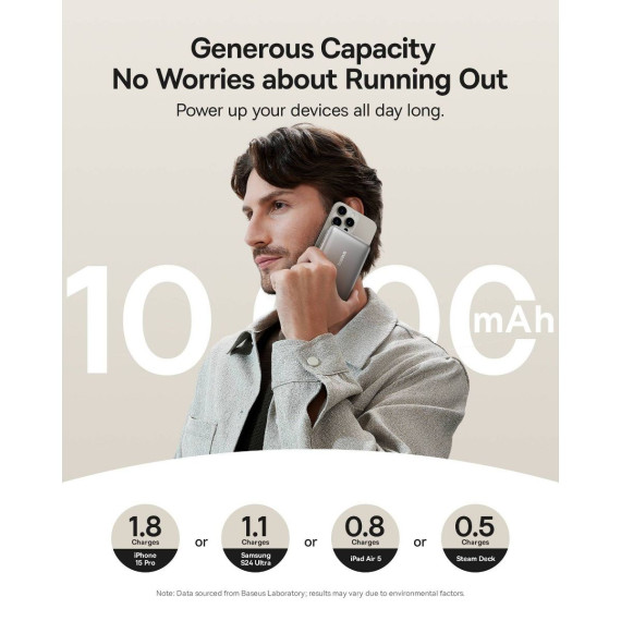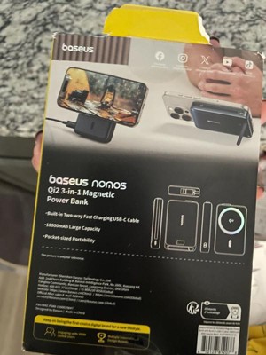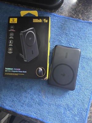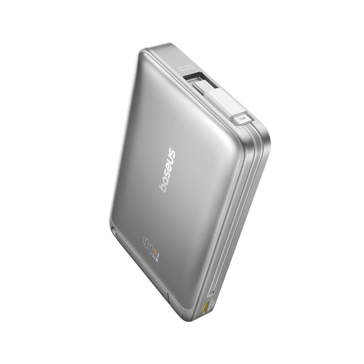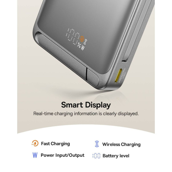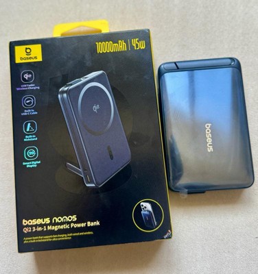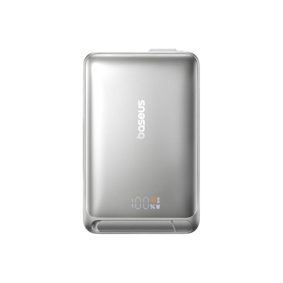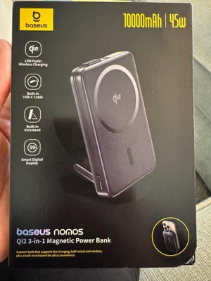 Baseus 10000mAh Nomos Qi2 Magnetic Bracket Power Bank with Built-in USB-C Cable 45W - Gray: Compatible with Apple & Samsung Models